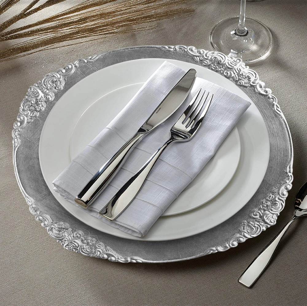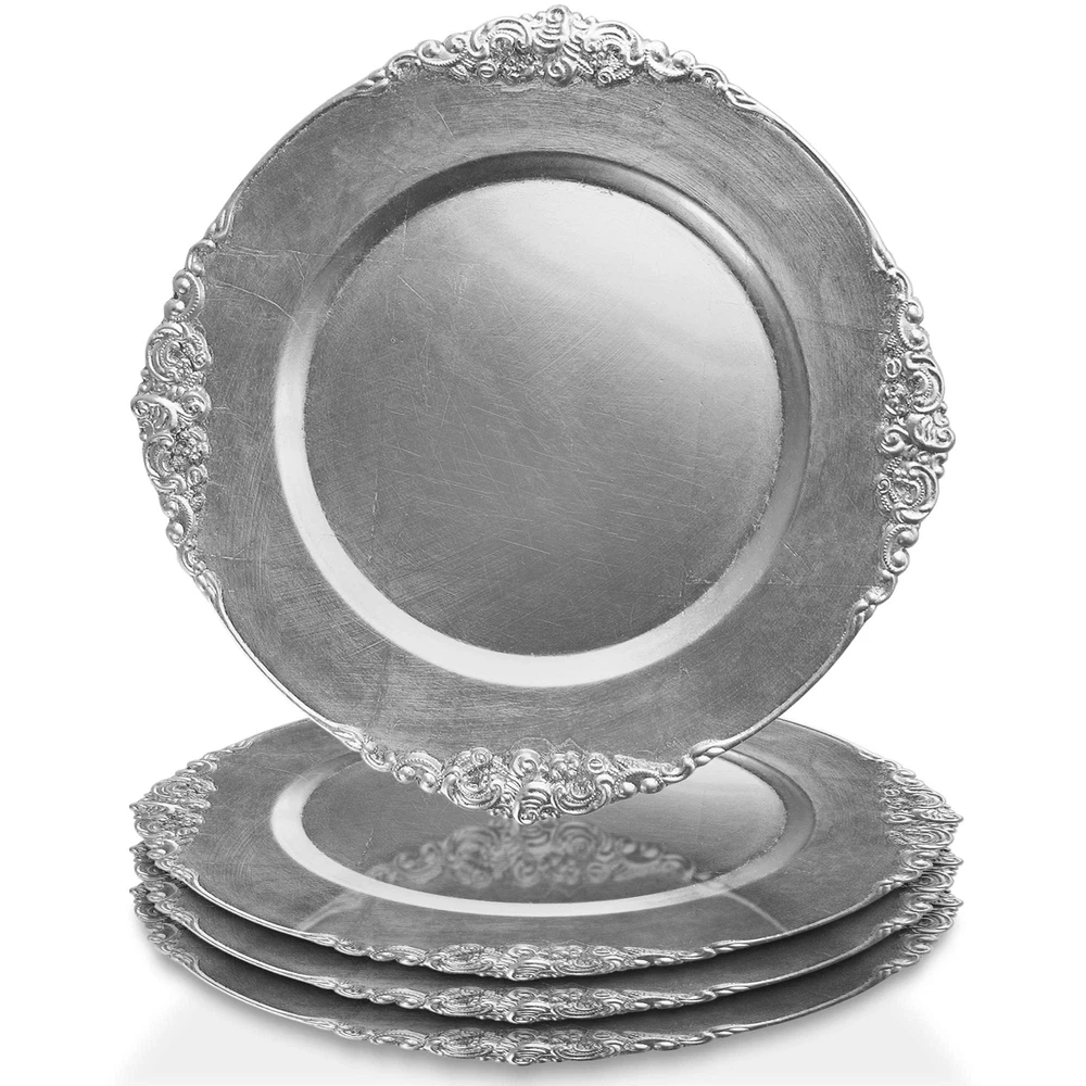 Take your tablescape to new levels of sophistication,Whether you’re hosting an intimate dinner party or glamorous upscale event, these Charger Plates from Charge It by Jay offer amazing convenience. Blending high-end decorative appeal with the practicality of a placemat, each charger catches guests’ minor messes and spills throughout the evening. Use them to display name cards, menus, napkin rings and other elegant accessories before placing courses atop their spacious 13” surface area. Available in a variety of colors, materials and styles, the collection brings beautiful, durable hospitality to every dinner service. Charge It by Jay delivers unique gifts, supplies and collectibles crafted with the time-honored techniques and long-lasting materials of yesteryear. Upgrade your event with our vast lineup of premium serve ware and other artful accessories, and purchase confidently knowing your treasures always arrive in peak condition. Once they do, you’ll be entertaining in style. Add some Charger Plates to your cart today! Specs Details Quantity: 4 Surface diameter: 13” Material: melamine Use: indoor and outdoor Care: wash and dry by hand Note: for decorative use only How to Enjoy Place a charger at the center of each place setting Decorate the table with complementary flowers and fabrics Set each course on top to keep your tablecloth clean Behold guests’ admiration of your thoughtful tablescape! BRING INSTANT ELEGANCE TO THE TABLE – Decorative Charger Plate Makes a Stunning Focal Point for Any Place Setting; Perfect Choice for Home, Catered Parties, Restaurants, Professional Uses & Great Gift Item. SUPER DURABLE MELAMINE MATERIAL – High Quality Resilient Piece Resists Chipping, Cracking, Fading & Other Common Damage for Many Years of Dependable Use; Versatile Design is Ideal for Indoor & Outdoor Events AMPLE 13” DIAMETER SURFACE – Versatile Large Service Plate Keeps the Table Clean & Accommodates a Variety of Courses Including Soup Bowls, Salad Plates, Dinner Plates, Dessert Plates & Other Unique Dishes EASY, BREEZY MAINTENANCE – No Complicated Care, Cleaning or Upkeep; Just Wipe Service Plates Clean w/ Warm Water & Mild Soap & Let Air Dry; Safely Stack Chargers & w/ Your Supplies for Next Time SOPHISTICATION FOR EVERY OCCASION – Charger Plates Compliments many Different Decors and Color Schemes. Collect a Bulk Supply of Charger Plates for Use at Formal Dinner Parties, Holiday Gatherings, Weddings, Bridal & Baby Showers, Upscale Events & Other Celebrations.