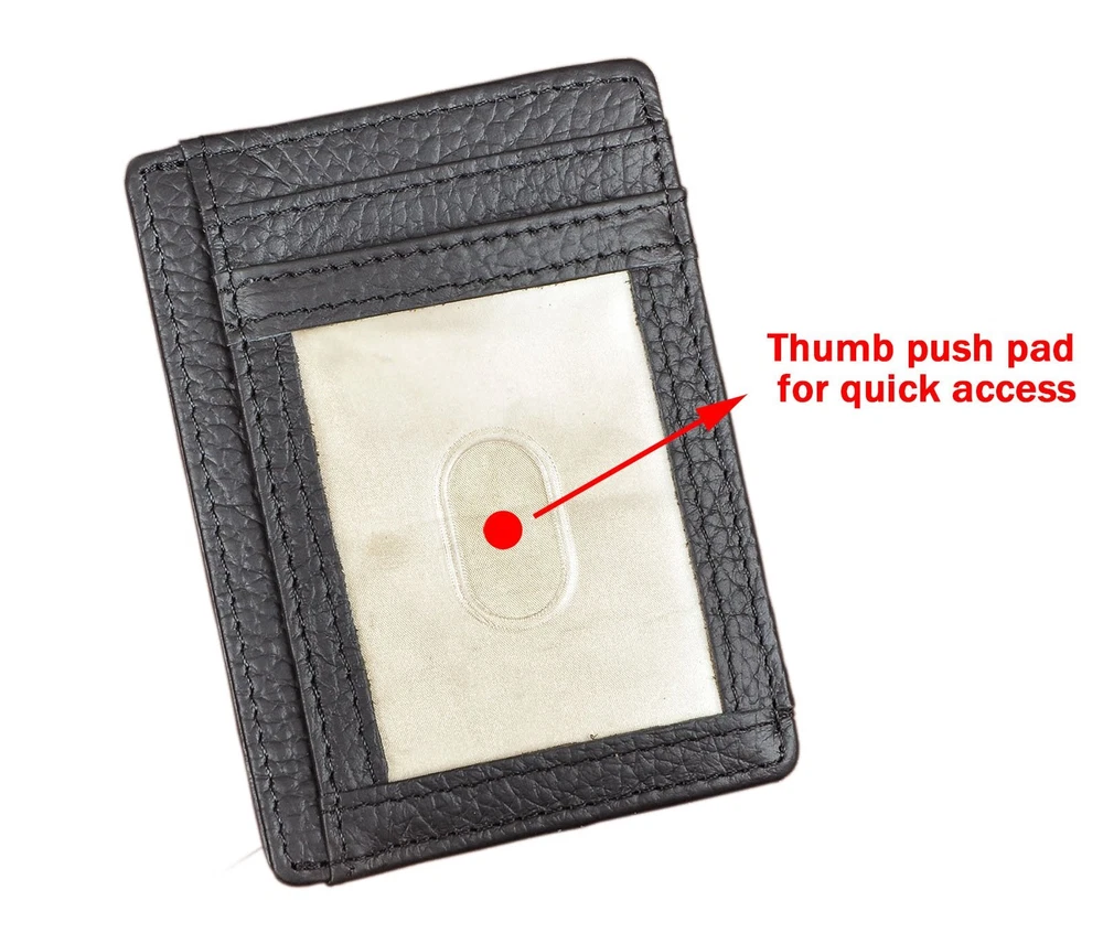 Le'aokuu RFID Real Leather Minimalist Slim Wallet Front Pocket Credit Business Product NO: W10922 Material: Genuine leather Size: L7.9cm×W0.4cm×H10.8cm (3.11"×0.16"×4.25"), Weight: about 0.04kg RFID Blocking: This Pocket Wallet is equipped with advanced RFID Secure technology, it helps to protect your credit cards, debit cards, driver license and ID Cars from electronic pickpocketing, RFID scanners and readers.Does Block 13.56 MHz Frequency, but it cannot block 125 KHz frequency such as some ID badge, access cards and hotel room cards. Structure: This wallet has 6 card slots, 1 middle compartment for note or few charges, 1 ID window with thumb push pad for easy access. This wallet is slim and thin, Perfect Front Pocket wallet to carry some charges and a few cards. Description Real Leather Minimalist Slim Wallet Front Pocket Credit Card Case Shipping We offer FREE shipping on all orders! We ship within Three business days of payment, usually sooner. We use a selection of shipping services such as UPS, FedEx, USPS etc. We only ship to the lower 48 states, no APO/FPO addresses or PO Boxes allowed. Local pickups and combined shipping options are not provided at this time. Return You can return a product for up to 30 days from the date you purchased it. Any product you return must be in the same condition you received it and in the original packaging. Please keep the receipt. Payment We accept payment by any of the following methods: PayPal Please pay as soon as possible after winning an auction, as that will allow us to post your item to you sooner! Feedback Customer satisfaction is very important to us. If you have any problem with your order, please contact us and we will do our best to make you satisfied. Contact Us If you have any queries, please contact us via ebay. We usually respond within 24 hours on weekdays. Please visit our eBay store to check out other items for sale! Thank you for shopping at our store.