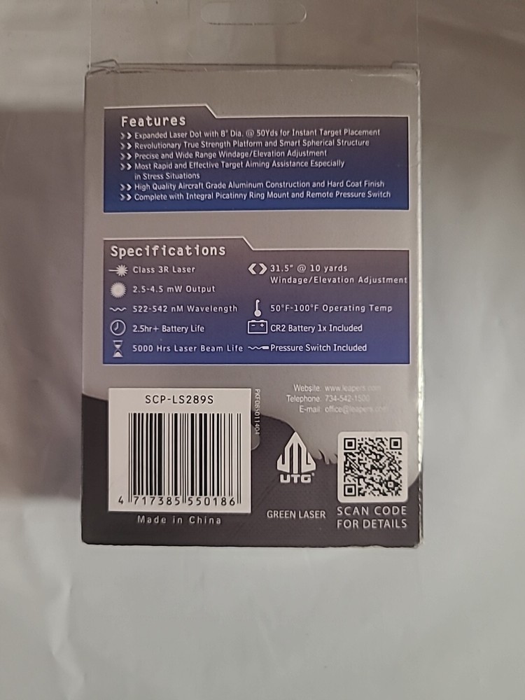 The Leapers UTG BullDot Compact Green Laser is a rail-mounted laser sight designed for rifles. It features a bright green laser with a green reticle color, providing enhanced visibility in various lighting conditions. This compact laser sight is ideal for use on subcompact firearms and offers precision aiming for improved shooting accuracy during hunting or sporting activities.