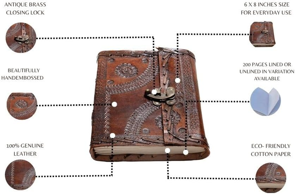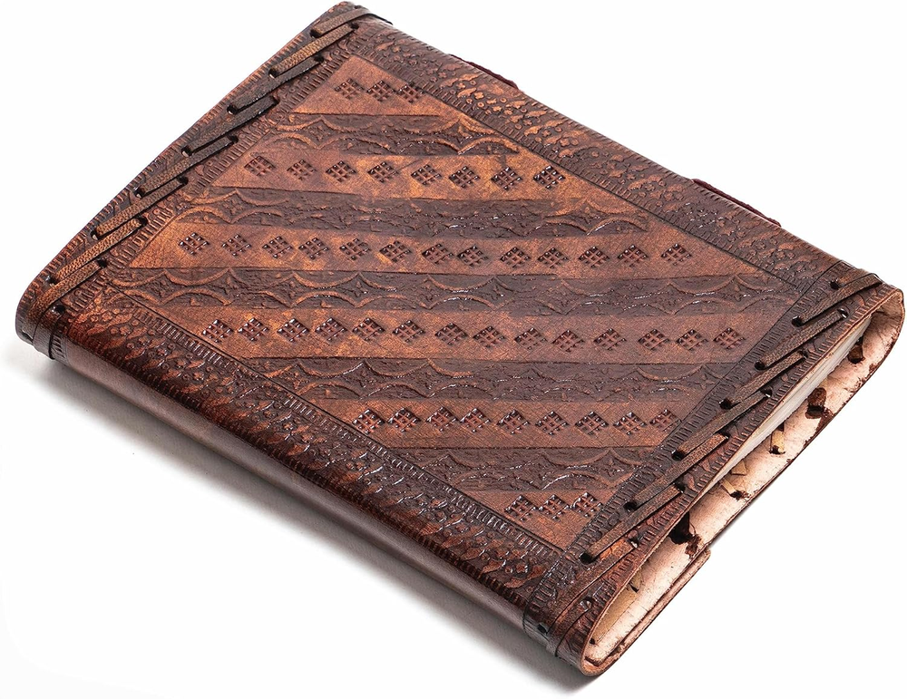 Store New Arrivals Add to Favorite View Feedback Contact Leather Bound Journal Sketch Book with Lock for Men Women Unlined Paper 200 Pages - Genuine Journals for Writing Handmade 6 X 8 Inch Brown Embossed Description Sheet Size 6 x 8 inches Number of Items 1 Color BROWN Special Feature Lock Cover Material Leather Material Type leather Style UNLINED JOURNAL Pages 200 Item Weight 3.53 ounces Theme Book Ruling Plain Ruling Type Plain Is Discontinued By Manufacturer No Product Dimensions 8"L x 6"W x 1"Th EXQUISITELY HANDCRAFTED LEATHER JOURNAL: Our leather journal is meticulously designed and beautifully embossed, making it a unique and stylish choice for writing enthusiasts. PREMIUM QUALITY PAPER FOR WRITING: Our journal features non-bleeding, eco-friendly cotton-made paper with unlined pages. Each 200-page notebook is acid-free, ensuring that your writing will stand the test of time. Compatible with any ink pen or pencil. VERSATILE SIZE FOR EVERYDAY USE: With dimensions of 6" x 1" x 8" inches, our portable journal is perfectly sized for various purposes. Use it as a health journal, sketchbook, dream journal, or poetry journal. It's an ideal companion for capturing your daily thoughts, dreams, and life lists. Also suitable for designing, doodling, and calligraphy. THOUGHTFUL GIFT FOR WOMEN: Our leather journal is a perfect gift choice. It's a cherished companion for creative expression and recording precious memories. Whether it's for a birthday, anniversary, or graduation, this journal is sure to impress and make a lasting impression. DESIGNED TO INSPIRE PEN-AND-PAPER ENTHUSIASTS: Just like a trusted companion, our journal invites you to unleash your creativity and preserve cherished moments. Whether you're writing, drawing, or reflecting, our handmade journal with plain paper will be your faithful companion for years to come. Product Description Montexoo Vintage Leather Journal Diary Lock Sketchbook Notebook for Men and Women - Travel &Bullet Journaling - Handmade, Large, and Cool Brown Design Introducing Montexoo, your destination for an extensive selection of exquisite Leather journals and Accessories. We firmly believe that quality defines a brand, which is why we meticulously handpick the finest raw materials. Our unwavering commitment to product excellence and consumer safety is upheld through stringent golden standards in the manufacturing process. Rest assured, this product is completely free from any harmful or toxic substances that could jeopardize your health. Established two years ago, our brand was born with a singular purpose—to ensure that you, as our valued consumer, lead a comfortable and hassle-free life. We take immense pride in catering to your interests and needs, and as such, all our offerings are not only aesthetically pleasing but also crafted to the highest standards of quality. This versatile leather journal can serve as your trusty companion, whether you're seeking a leather journal, a writing journal, a leather-bound notebook, or a men's journal. Designed for both men and women, our journals boast lined pages and an alluring vintage charm. Immerse yourself in the joy of journaling with our thoughtfully created leather journals, leather-bound notebooks, and field journals. Experience the captivating allure of Montexoo today. A Journal for all your Treasured Thoughts Key Features:- Dimensions: This leather journal measures 6 inches in length, 1.25 inches in width, and 8 inches in height, making it compact and easily portable. Color: It features an elegant brown color that adds a touch of sophistication to this journal for both men and women. Material: The journal is skillfully crafted using top grain leather, known for its durability and luxurious appearance. Pages: With a generous page count of 200, including both sides, this journal provides ample space for writing, note-taking, or using it as a book of shadows. Paper: The pages are designed with a smooth texture, ensuring a pleasurable writing experience. You can effortlessly glide any pen across the paper, making this leather journal perfect as a notebook for various purposes. Exquisitely Crafted & Uniquely Embossed: Experience the beauty of this leather journal, meticulously designed by our talented artists and adorned with captivating embossing. This journal stands out with its stunning craftsmanship and attention to detail, making it truly one-of-a-kind. Non-Bleeding Cotton-Made Paper : The journal features 200 pages (counting both sides) of meticulously handcrafted paper, made from cotton bio-mass. This special paper is not only acid-free but also prevents ink from bleeding through, ensuring a clean and crisp writing experience. You can confidently use any kind of ink pen or pencil on this high-quality paper. Perfectly Sized for Versatile Use: Measuring at a convenient length of 6 inches, a width of 1 inch, and a height of 8 inches, this personal diary is designed to be easily carried and versatile in its applications. Whether you want to use it as a health journal, sketchbook, dream journal, or poetry journal. Design and Features of Montexoo hand embossed Leather Journal Best ways to use a diary Draw Your Day Wish Lists Inspirational Thoughts Adventure Book Personal Thought Travel Journal Brass Lock On Upper Side On one side of the diary is a brass locking mechanism, while the opposite side sports a Coptic design stitching for a vintage look. Charity on every Sale we contribute the part of every sale to the charity for welfare of children's of slums area for their education and foods. ABOUT US We offer the best prices around on high quality products. Our E-store includes media such as books, movies, music and games while offering electronics, toys, sporting apparel, clothing, tools, general home, garden items and more. SHIPPING We are always working hard to ensure your package arrives as soon as possible. Please understand that some factors like weather, high postal traffic, and the performance of shipp