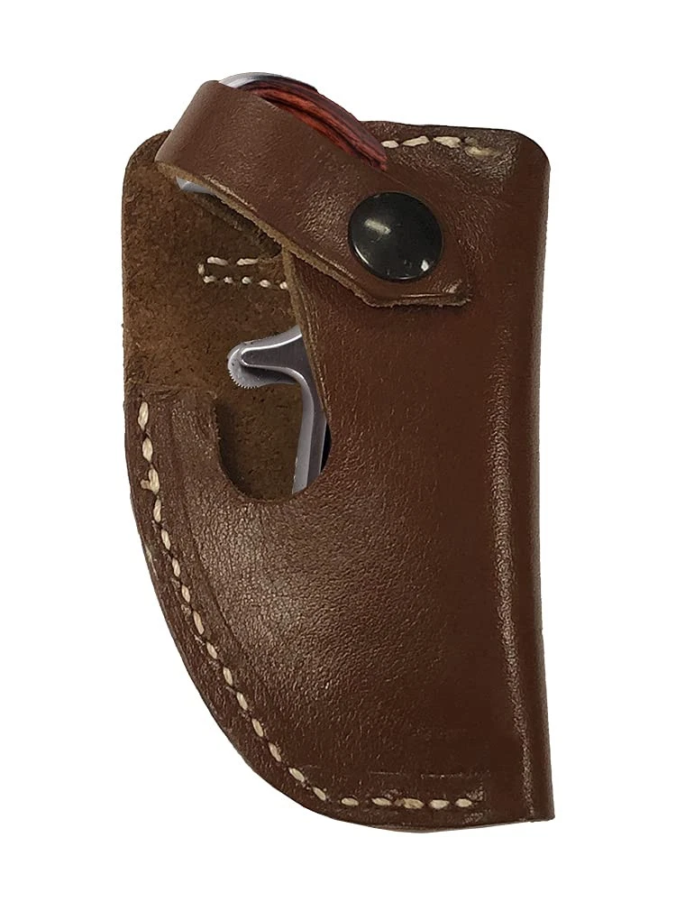 Be prepared for anything with our new Leather Derringer Belt Slide Holster! This holster is made with genuine leather and easily slides onto your belt, perfectly holding and concealing your Derringer until you need to draw it! The genuine leather accommodates the North American Arms Derringer .22 Long Rifle Revolver. This Derringer .22 LR Revolver OWBholster works perfectly by sliding it on to your belt with the belt slide, and is easy to conceal. A leather thumb break with a Heavy Duty Black Oxide Snap keeps your Derringer in place until you are ready to draw it. Expertly stitched holster ensures long life of your product. The leather is formed to the shape of the Derringer to help hold it in place. Proudly Made in the USA using only the highest quality materials, this holster wont let you down! Keep protection within reach! Note: Holster is made for Right Hand Draw