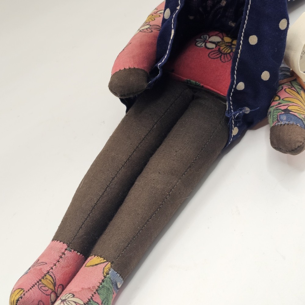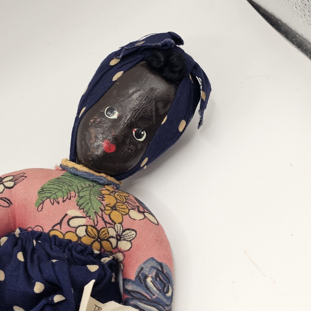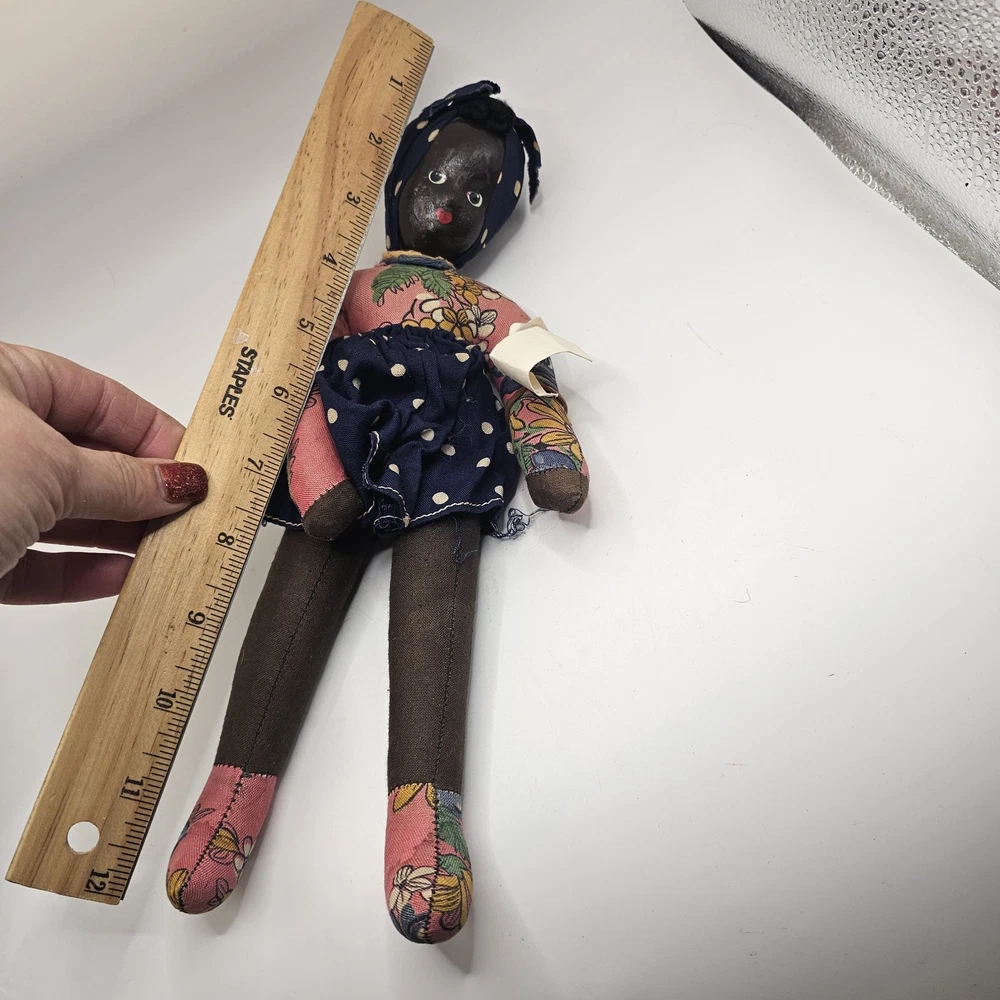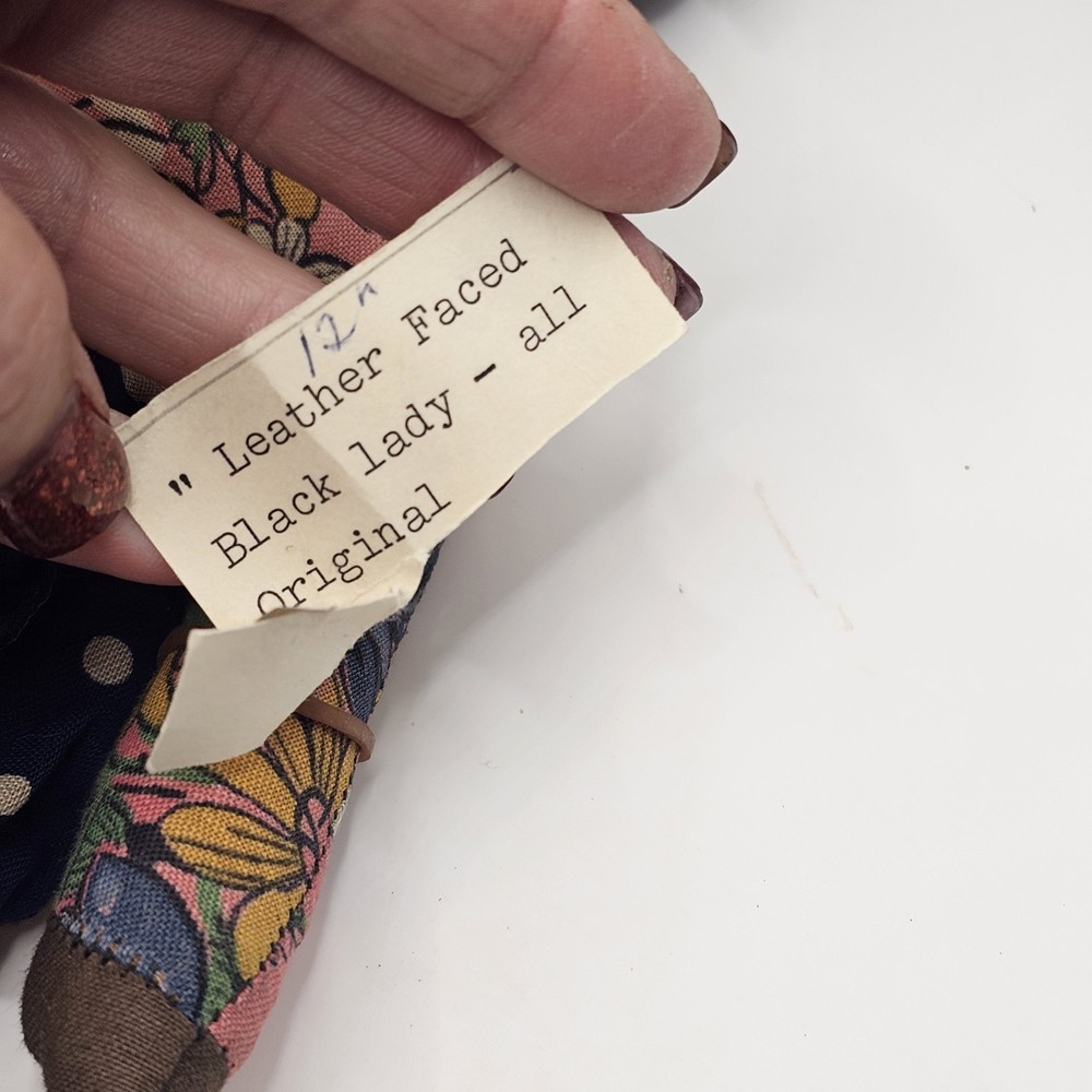 The product is a vintage leather face black woman doll, made with a folk art style that showcases traditional African craftsmanship. This handmade piece is a unique estate find, adding to its rarity and appeal as a collectible item. The doll's intricate design and cultural significance make it a valuable piece for collectors interested in African art and heritage. See photos for imperfections sold as is