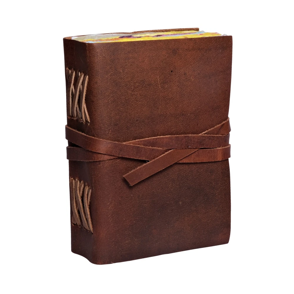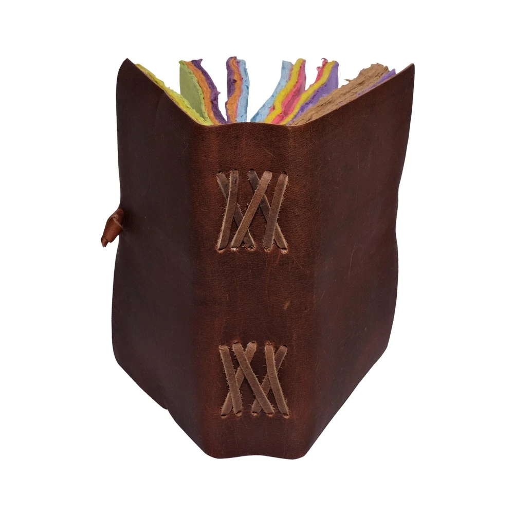 ✔ VINTAGE HANDMADE COLORED PAPER - Rustic Scrapbook Journal is made with 240 pages of Antique Paper which looks like it was pulled from a fantasy. You love with the m ulticolored antique handmade cotton paper in 7 colors which is unique to our journal Notebook all the colors are unique. ✔ USE OF PEN - Sketch, Doodle, and Write on your Leather Bound Journal with a Calligraphy Pen Fountain Pen, Brush Pen, Ball Pen, Acrylic Colors, Watercolor, and many more. Paste photos, clippings, recipes, scrap, etc. onto the parchment-style pages. We guarantee no bleed-through. ✔ STURDY BINDING FOR YOUR KEEPSAKE: Strong hand-stitched leather binding keeps the pages securely bound to the genuine leather cover. Pages will never come loose. ✔ THE PERFECT GIFT: You might want to keep the journal to yourself when you put your hands on the soft and supple leather so get two! It's perfect for a personal diary, Wiccan journal, witchcraft supplies, photo album, scrapbook, and junk journal. ✔ ECO-FRIENDLY BY NATURE: A lot of thought went into making sure the journal had a positive environmental effect. So, we decided to use only 240 pages/120 sheets of handmade, hand-torn, non-refillable recycled deckle edge cotton fiber paper that is thick enough to withstand any type of pen. Our paper is acid-free and no trees were harmed in its making.