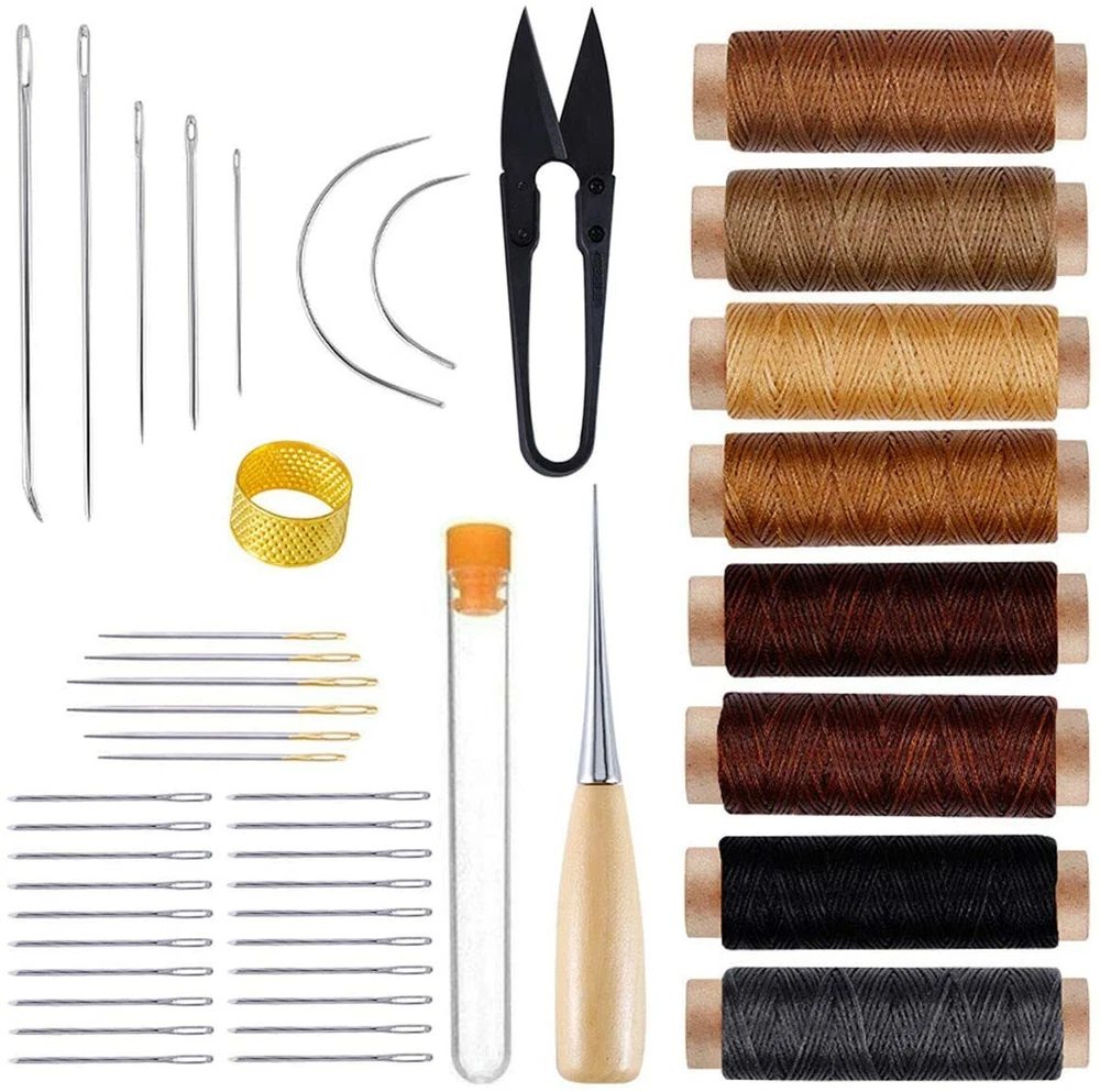 Leather Repair Kit Craft Tools Hand Sewing Needles Drilling Awl Waxed Thread Set Description>>> [ Leather Craft Tools] : Sewing needle, thimble, scissors, hook cone, wax thread, make up essential kit for sewing leather [ Waxed Thread ] : There are 8 colors of 150D waxed thread in this tools set. 33 yards per roll (about 30 meters) smooth surface, strong and durable. [ Needles ] : The package contains 26 pieces of large eye needles, different types blunt needles and sharp needles meet your different needs. [ Wide Application ] : Leather crafting tools and supplies perfect for leather bag making, shoe repair, outdoor equipment, DIY crafts [ Great gift ] : Perfect for repair the sofa, carpet, backpack or DIY crafts at home, as a gift for your family or yourself is a great choice Payment Method Shipping Policy Return Policy Feedback Contact us Payment Method If you have any special request(shipping address/colors/size and so on), Please leave note in payment when making payment. Shipping Policy Normally orders will be shipped within 3 working days. Please make sure your shipping address and the order information is correct before placing an order. We will not be responsible for item loss due to wrong or unknown address. Please make sure there is a phone number in your order, in case that the post office need it to contact you if address is not available or other reasons. International buyers are responsible for duties and customs fees. Return Policy Returns and Exchange accepted within 30 Days. If the item you received is faulty, damaged or incorrect, or any further problems, please contact our customer service with a photo on eBay within 30 days from item received. If customer placed a wrong order or if there's no quality problem, then customer will take the resposibility for the return shipping cost. Feedback Please leave us a positive feedback if you are happy with our product and service. We always try our best make sure you have a pleasant experience with your purchases. If you have any questions or needs with your order, feel free to contact us. Contact us Working Days: Monday to Saturday. Please leave us a message if you have some questions or needs, we will reply you as soon as possible.
