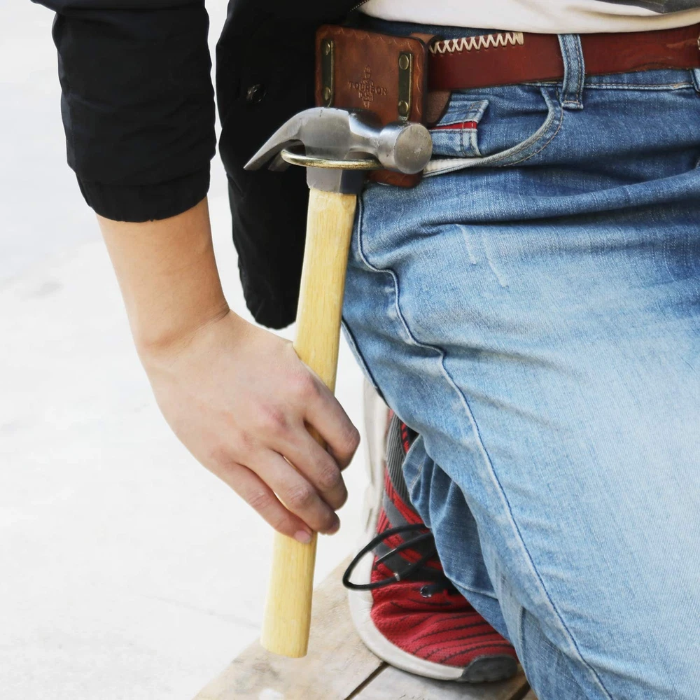 This leather hammer holster is a game-changer for DIYers and professionals! The sturdy steel loop keeps your hammer secure yet easily accessible, while the high-quality leather ensures durability. The safety rivets add extra peace of mind, and the compact design fits most hammers perfectly. No more fumbling around—this holder keeps your tool right where you need it, making any job smoother. A must-have for anyone who works with hammers regularly!