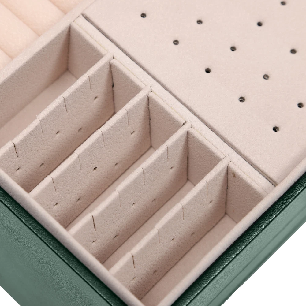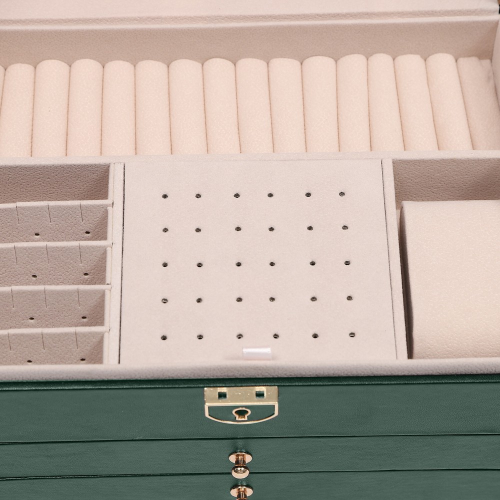 This watch box is a game-changer for keeping jewelry and watches organized! The sleek green PU and velveteen interior adds a touch of luxury while protecting delicate items. With three spacious tiers, it fits watches, rings, and more without clutter. The sturdy zinc alloy frame and electroplated finish give it a modern, high-end look. Perfect for anyone who loves a tidy display—great gift for men, women, or teens. Lightweight yet durable, it’s a must-have for keeping valuables safe and stylish. Love how everything stays in place!