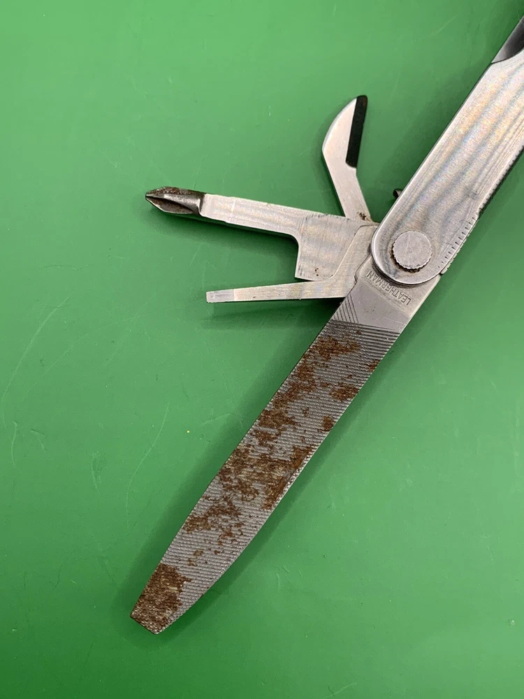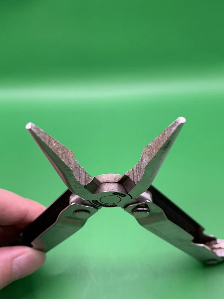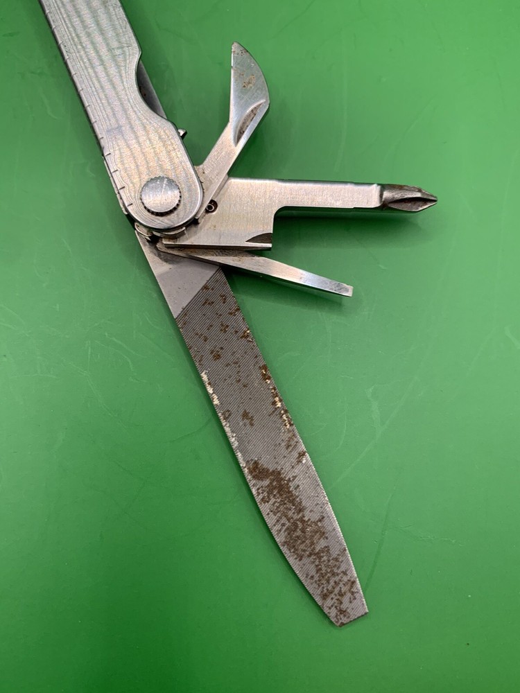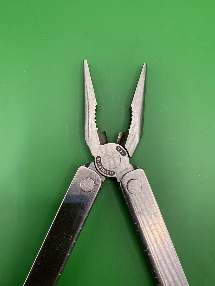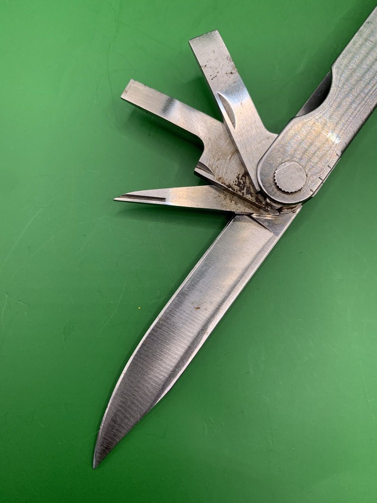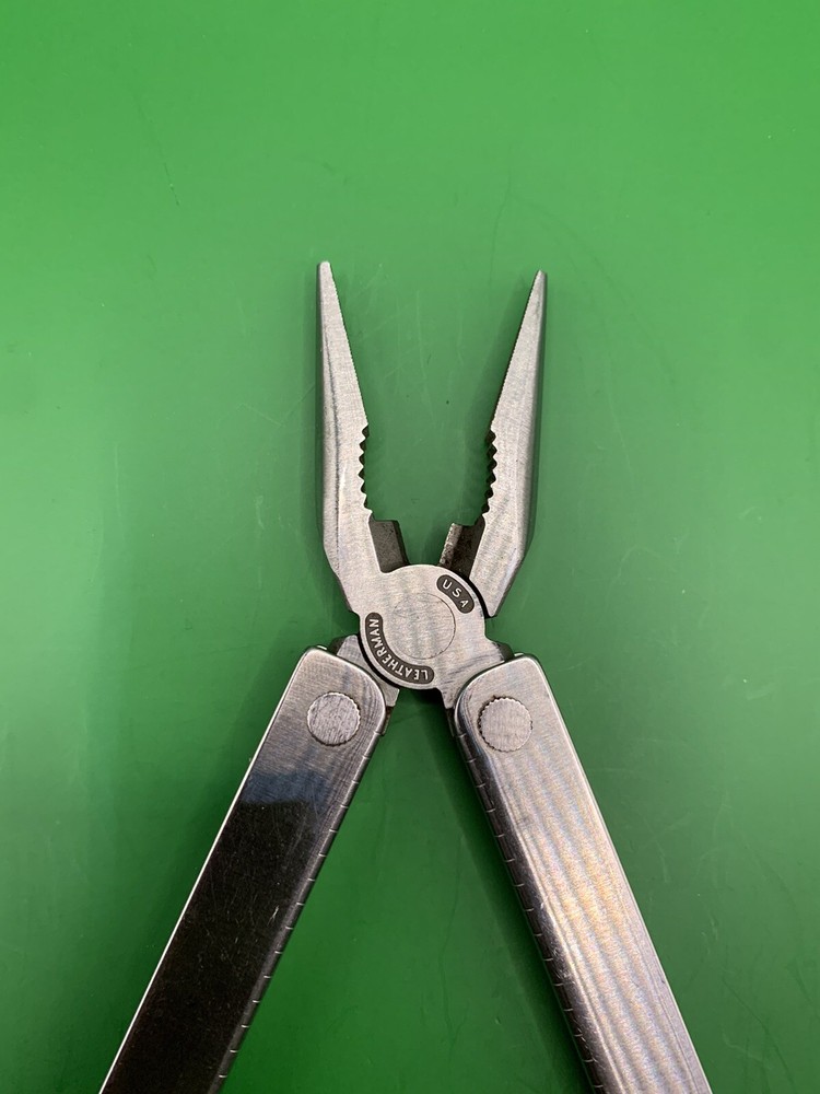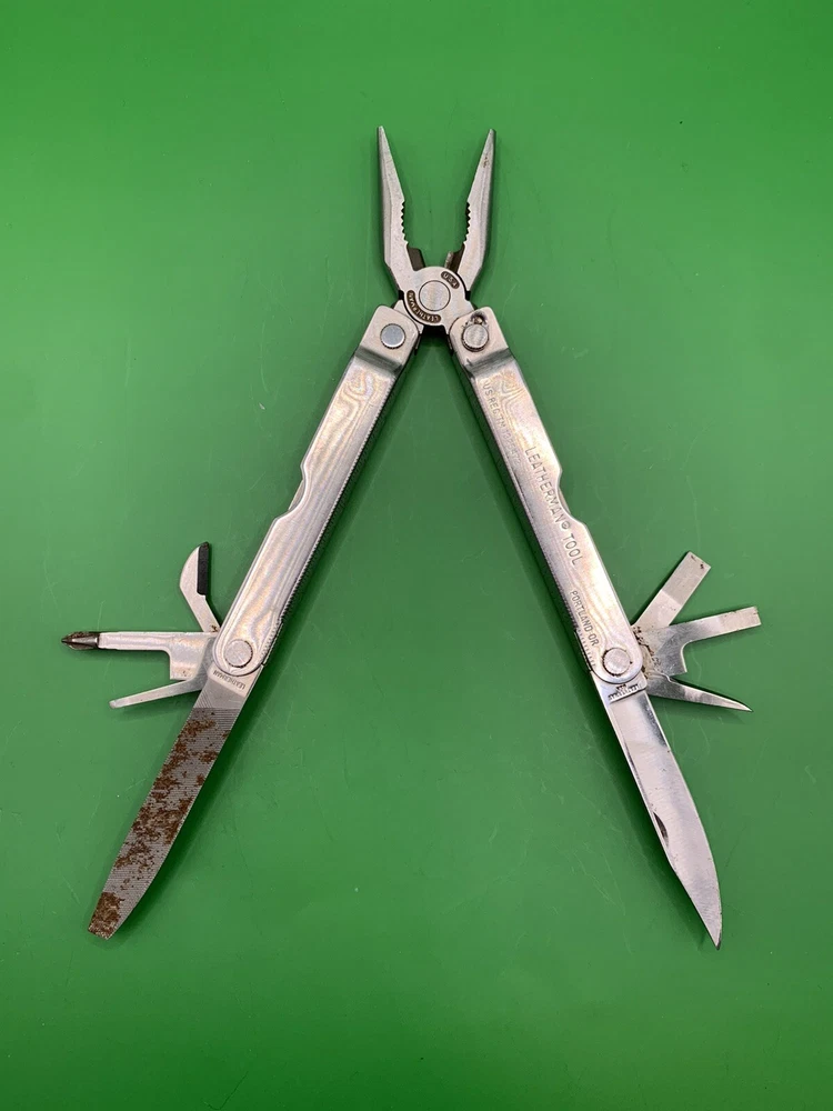 Used Leatherman multi tool with sheath. Has some wear on the handles and the blades may need to be sharpened. Could use some oil and a little cleaning. See pictures for overall cosmetic condition. By purchasing you affirm that you are of legal age and aware of all applicable laws.