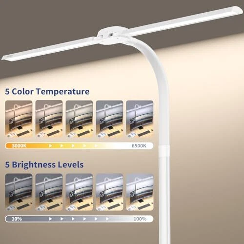 Return Policy Fast Delivery Trusted seller Led Desk Lamp with USB Charging Port Architect Task Dual Lamps for Home Office with Atmosphere Lighting, 24W Ultra Bright Modern Flexible Gooseneck Tall Table Light 5 Color Modes for Drafting Reading Product Description Three-Sixty ROTABLE LIGHT HEAD: With the ability to rotate the light head freely, this LED desk lamp offers versatile functionality. When positioned upwards, it serves as an ambient light, creating a soothing atmosp. Additionally, when directed towards a person's face, it acts as an efficient conference light, ensuring clear visibility during meetings. CONVENIENT USB CHARGING PORT AND REMOTE CONTROL: With the built-in USB charging port, you can conveniently charge your devices while working or studying. Additionally, the remote control allows you to effortlessly adjust the lamp's settings from the comfort of your seat, providing ultimate convenience and ease of use. ULTRA BRIGHT AND WIDE COVERAGE: Measuring 31.5 inches in length and equipped with a powerful 24W output, this desk lamp boasts a remarkably wide coverage area and exceptional brightness. This extensive lighting range ensures uniform illumination across your workspace or reading material, minimizing eye strain and enhancing productivity. CRI>90 EYE PROTECTION TECHNOLOGY: Incorporating advanced CRI (Color Rendering Index) technology, this desk lamp offers superior eye protection by delivering high-quality lighting that closely mimics natural daylight. With a CRI rating above 90, it displays colors accurately and reduces eye strain caused by glare or flickering lights while providing optimal visual comfort. CUSTOMIZABLE LIGHTING EXPERIENCE: 5 color temperatures (3000K-6500K) × 5 levels of brightness (20%-100%), this desk lamp lets you adjust the brightness and color temperature according to your preference. Whether you need a warm and cozy ambiance or a cool and crisp reading light, this lamp provides a customizable lighting experience. Shipping Returns Payment Shipping Shipping is FREE to all addresses other than APO/PO boxes in the lower 48 states. All our stock ships from US-based warehouses. Shipped via USPS or UPS (depending on location and package weight) Unless stated otherwise, all orders will ship within 24-72 hours of your payment being processed. Check our feedback to see the great reviews of FAST shipping we offer. Returns Seller does not accept returns Payment We currently accept payment via eBay managed payments only. Once payment is cleared, we will dispatch your shipment within 1-3 business days. Please refer to the "Shipping" tab for more information regarding shipping speed to your destination.