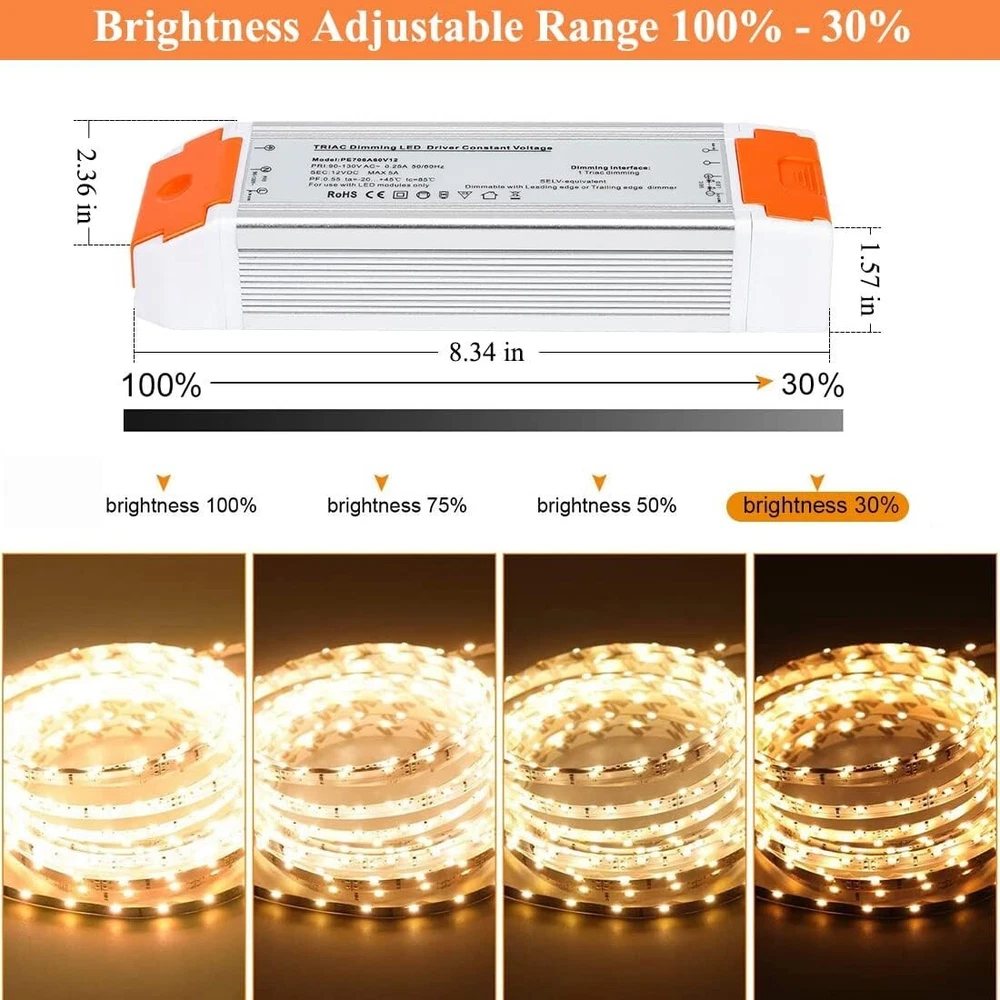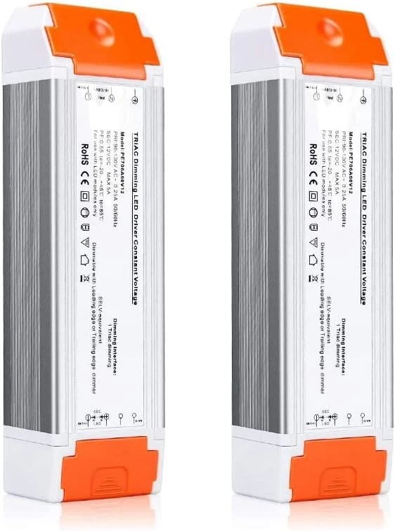 Led Driver 12v DC 60w 2 Pack Quiet Operation Universal Regulated dimmable Power Supply Input/Output Isolation Protection led Transformer dimmable for led Light 2 Pack Super Compatible - Dimmable LED driver is compatible with almost all AC control systems constant voltage led products. The 12v dimmable led driver is the best choice for landscape lighting and home lighting. Strong Stability - Dimmable LED driver flexible start, MCU control dimming process is better with no AC flicker high efficiency and stable performance. Input and output yellow isolation waterproof and dustproof protectio. Protection - Short-Circuit / Over Current / Over Voltage(OVP)/Under Voltage (Blackout Protection) and Auto-recovery Mode. Requirements for Use - The maximum power voltage is 60W 12V to ensure that the led power supply continues to work normally. The dimmable function requires both a dimmer switch and a dimmable LED light to be connected to dimmable power supply is compatible with Lutron, Leviton and other dimmer switches on the market. 5 s satisfaction and Maintained - Easily troubleshoot and replace at any time. If you have any questions about purchasing or installing, please let us know through the order or store page.