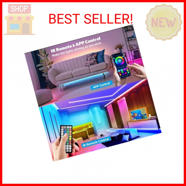 Led Lights 100ft(2 Rolls of 50ft) Smart APP Control Music Sync Led Strip Lights RGB Color Changing Led Lights Strips with Remote Led Lights for Bedroom Kitchen and Party - Music Sync Led Lights 100FT: RGB LED light strips can freely control thousands of colors through 44-key remote control or smartphone APP. Adjustable brightness and multiple lighting modes to fit room mood, built-in sensitivity adjustable microphone, which can create a romantic, relaxing and cheerful party ambiance with music. - Upgraded Strong Self-Adhesive Led strip Lighting: The strip lights has upgraded adhesive so it can stick very well on the dry & smooth surface. Led strips self-adhesive tape can firmly adhere to any dry and smooth surface, solving the problem of falling strip lights. We recommend you test the light before installation. - Easy to Use and Install Led Lights for Room : A complete Led lights strip 100ft kit ,no need for other devices, self adhesive tape easy to install. Smart Led strip lights are perfect for home decoration. These led strips give a warm and romantic atmosphere to dining rooms, bedrooms, staircases, doorways, computers, desks, corners, bars, meeting rooms and living rooms,making you feel relaxed and happy. - Timing LED Strip Lights: With the smart application, the light strips can automatically turn on and off through preset time. 28 dynamic modes and DIY color options available for you to choose, so you can select or define your own color. The 100ft Led lights can reach around your entire room and light up the whole place. (Note: The rgb lights are NOT waterproof). - Cuttable and Linkable Leds: This led room lights can be easily cut and linked with other light strips to get your desired length. You can DIY the length of the Led lights for room, while arrows of the lights should be faced to each other when connected. Payments We accept the following payment methods PayPal Support Our dedicated customer support team is here to assist you from 9AM to 5PM Monday through Friday, excluding public holidays. Should you reach out to us and not recieve an immediate response, it's likely due to a higher-than-usual volume of inquires. We want to reassure you that your concerns are important to us, and we're working dilligently to get back to you. Expect a response by the next business day at the latest. Your understanding and patience are greatly valued as we strive to provide you with the best support possible! Shipping All orders are processed within 5 business days. Shipping estimates may be shown on this listing by eBay, and these are often not an accurate reflection of our shipping times. If we are experiencing a high volume of orders, shipments may be delayed by a few days. Please allow additional days in transit for delivery. If there will be a significant delay in shipment of your order, we will contact you via message. Shipping rates & delivery estimates Shipping is often free, but if charges for your order apply they will be calculated and displayed at checkout.