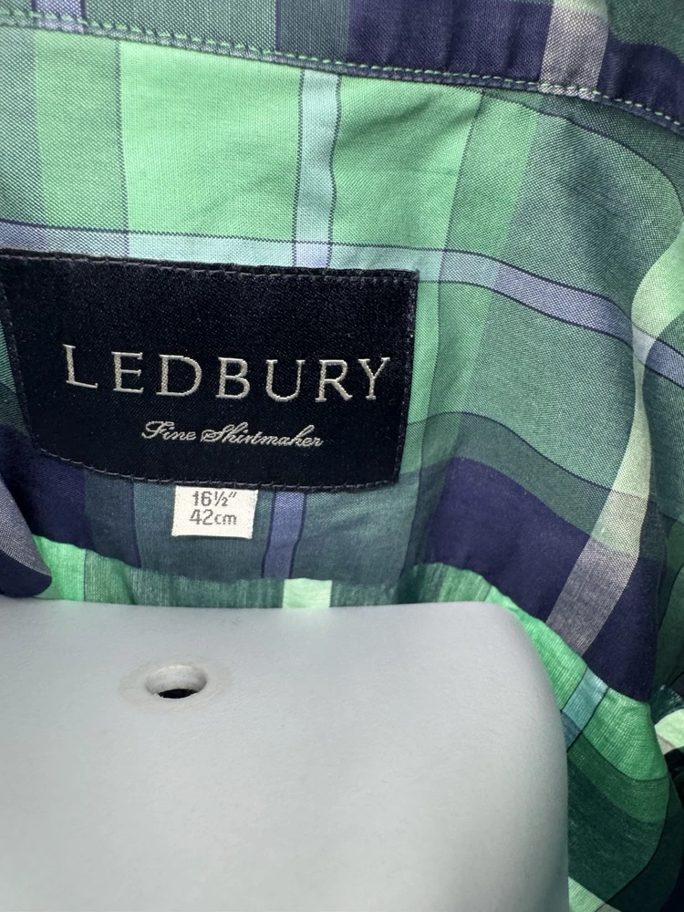 Ledbury Men's Shirt Item Description - Long sleeve, Green Plaid Shirt Condition - Good - Some wear on collar - See Pictures! Size - Men's 16.5 - Large (See Measurements) Material - Cotton Measurements – Chest (Armpit-Armpit): 24'' Front Length (Collar-Bottom): 28'' Back Length (Shoulder-Bottom): 30'' *All measurements are taken from items laid flat* **All Items Come From Smoke-Free Environment** Shipping & Payment Information All Items Will Be Shipped USPS First Class Or Priority With Tracking Information (Based On The Weight Of Your Order). I Accept Paypal And I Appreciate Payment Within 2 Days Of Purchase/Auction. Customers Who Do Not Pay Will Be Reported 4 Days After Purchase/Auction. Thank you so much for your interest in this item! If you have any questions, please message me! Good luck & Happy Shopping!