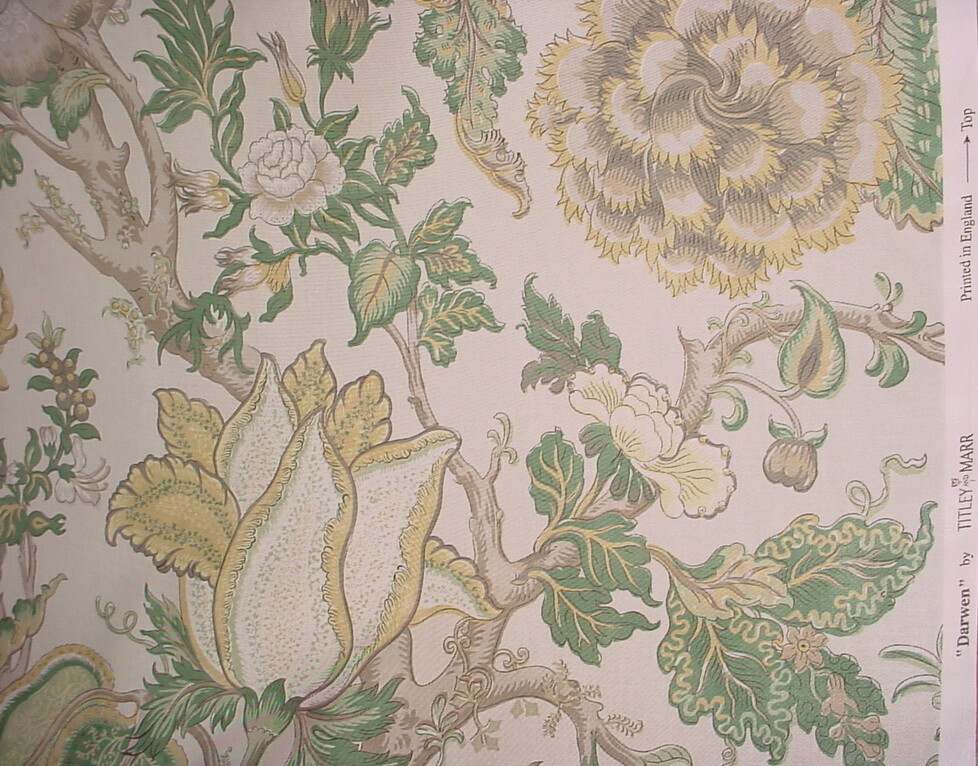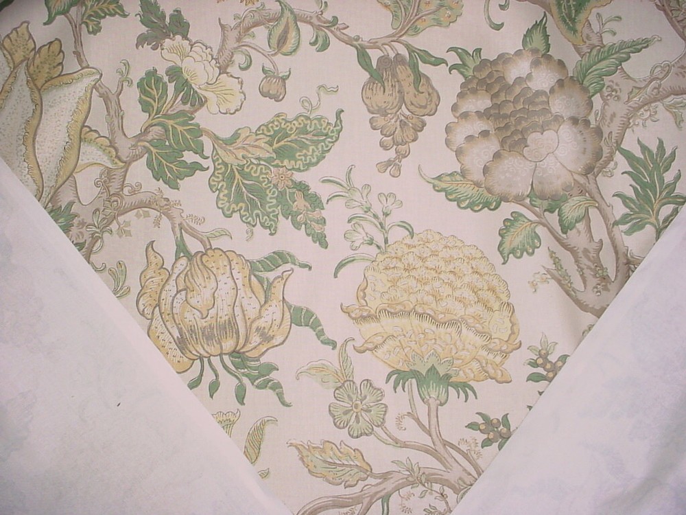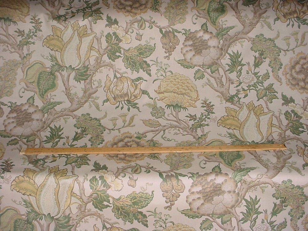 This offering is for a luxury material from a To the Trade Only design house, available here at a fraction of the retail cost. Design House: Lee Jofa Pattern Name: Darwen Print Pattern Number: 2013131.311 Colorway: Taupe/Spruce Collection: Length and Width: 10-3/4 yards by 54 inches wide A Brief Description: A beautifully printed cotton featuring Jacobean floral designs in mint, leaf, grey, stone, yellow, butter and silvery gray on an soft white background. Smooth hand, wonderful drape and matte finish. Fiber Content: 100% cotton Durability / Double Rub Count: Weight per yard: 10 ounces per yard Repeats: Horizontal - 27 Inches / Vertical - 26 Inches Imported from: United Kingdom Value per yard: $198.00 Total Value of offering: $3,168.00 --------------- Our Friendly Fine Print: All material is first quality in perfect condition and is carefully stored in a smoke-free, pet-free environment. Shipping: Distinctive Threads offers free shipping to the lower US States as part of our value. If you are located outside the continental United States, please contact us for a shipping quote. Worldwide shipping is available via the United States Postal Service and FedEx International. Please feel free to message us for a shipping quote. A note about color: We describe the colors we see as best we can and hope the photos accurately depict the colors. Color is subjective and differs from person to person and lighting. We also offer samples for purchase. Thank you for stopping by our store. We look forward to providing you with an exceptional, unique and distinctive online experience.