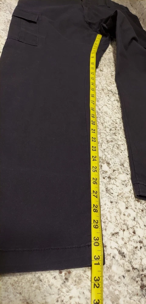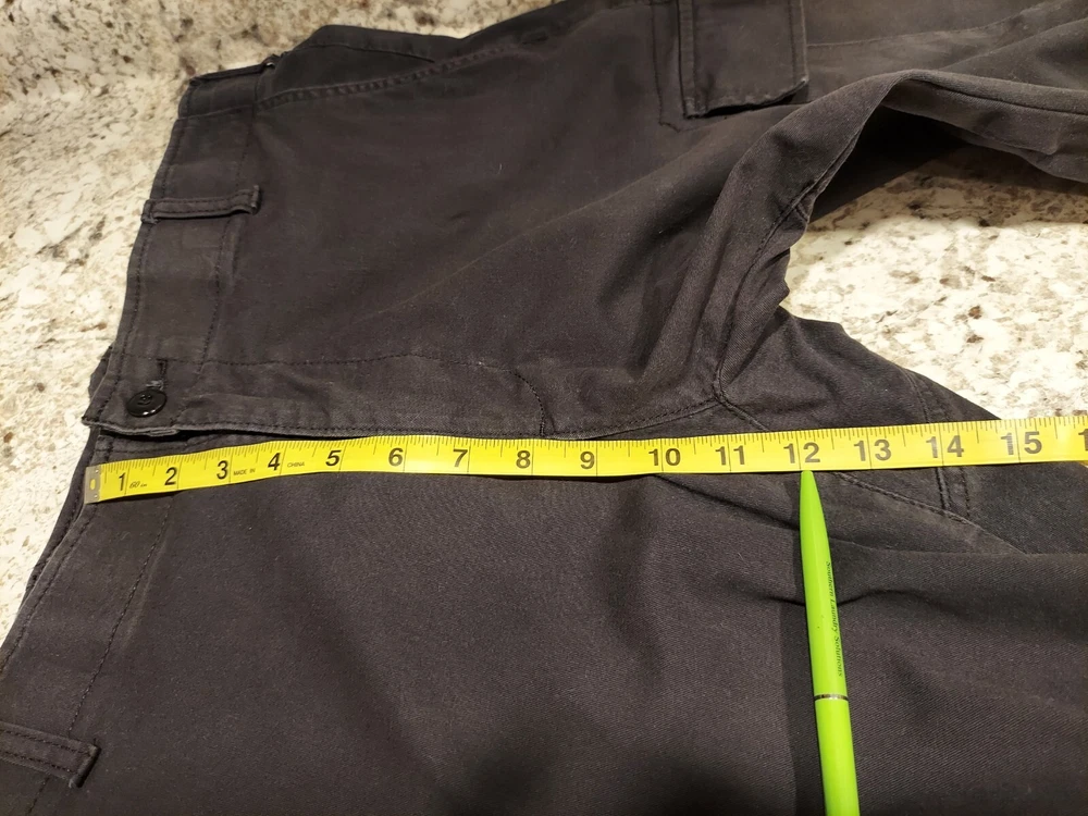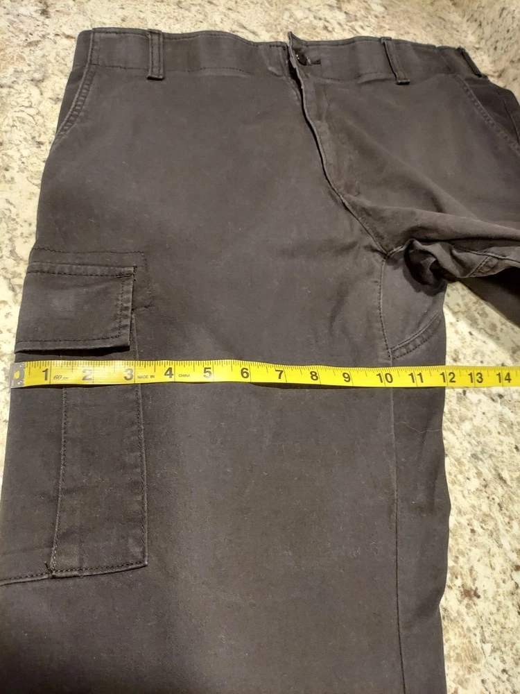 Waist: 36 in Inseam: 31 in Rise: 12 in Leg Width: 8 in Thigh: 12 in Please see measurements in photos.