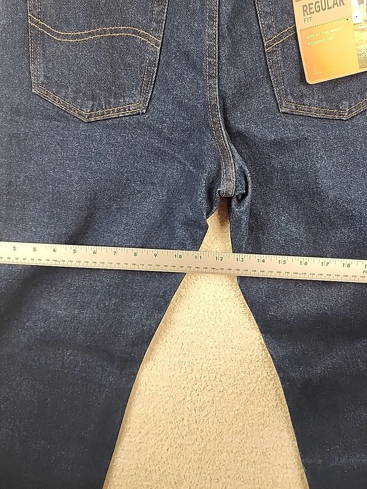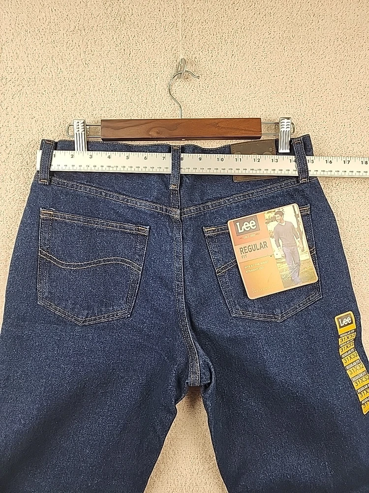 Refer to photos for measurements This pair of Lee jeans is a must-have for any stylish man. The regular fit and straight leg design ensure both comfort and fashion, while the 31x32 size and blue color add a touch of personalization. The jeans are made by a trusted brand, Lee, and are perfect for everyday wear. Whether you're going to work or out for a night on the town, these jeans will be the perfect addition to your wardrobe.