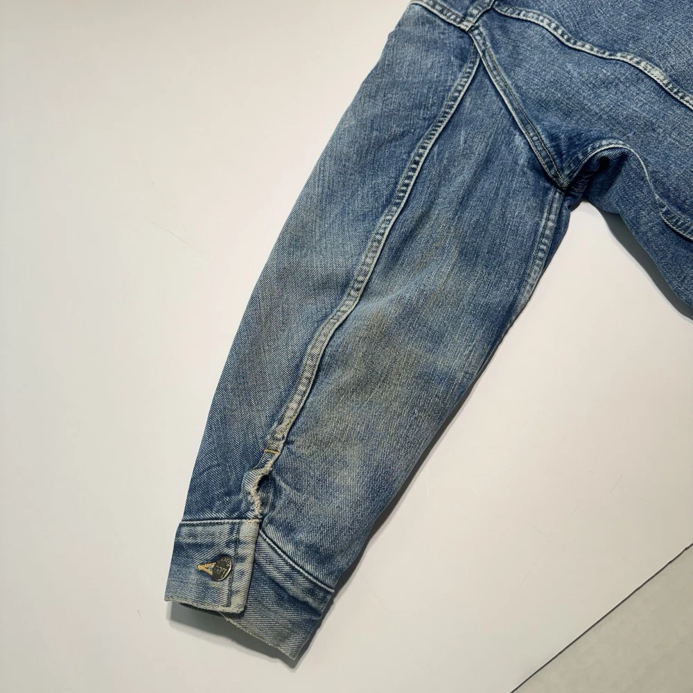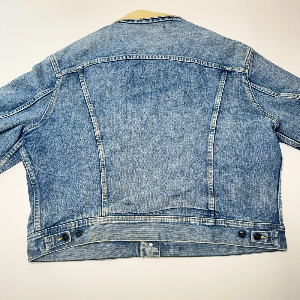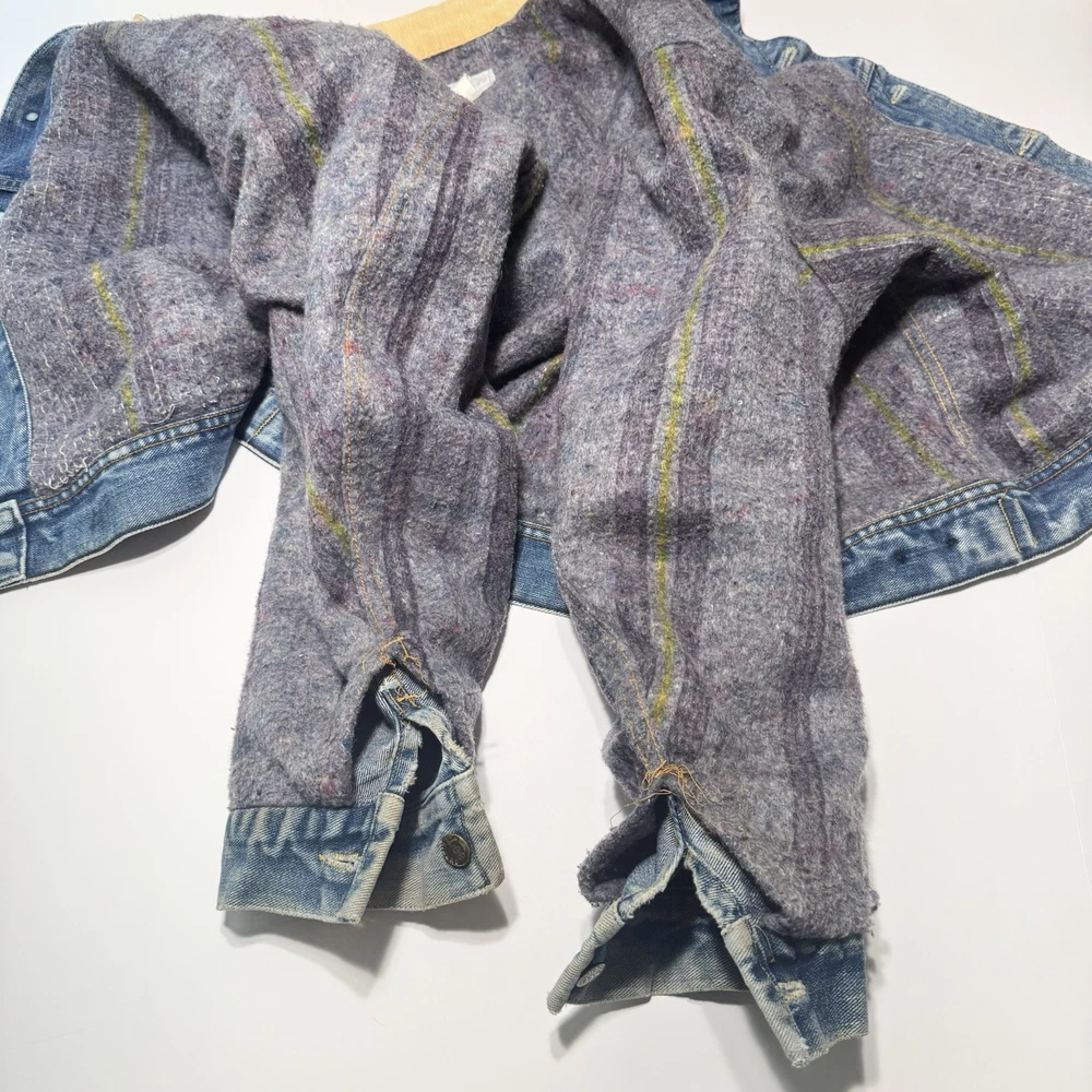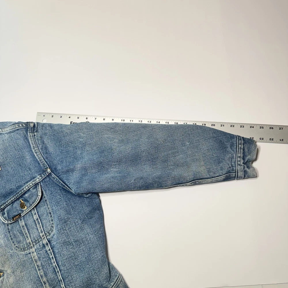 Lee Storm Rider Denim Jacket Size 50R Blanket Lined Vintage 70s Made In The USA This jacket is preowned and in good condition. Jacket has some signs of wear from use and age. Has some stains and a few small holes. Blanket lining on left bottom inside is coming apart. Getting thin going up on both sides. Collar is clean. All button are present. Denim is soft and broken in. See photos for details. Fast Shipping!!