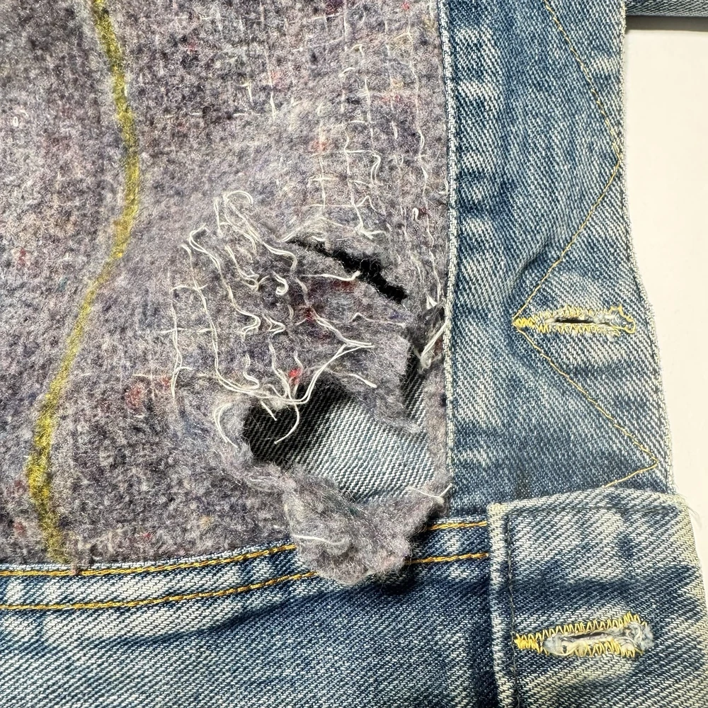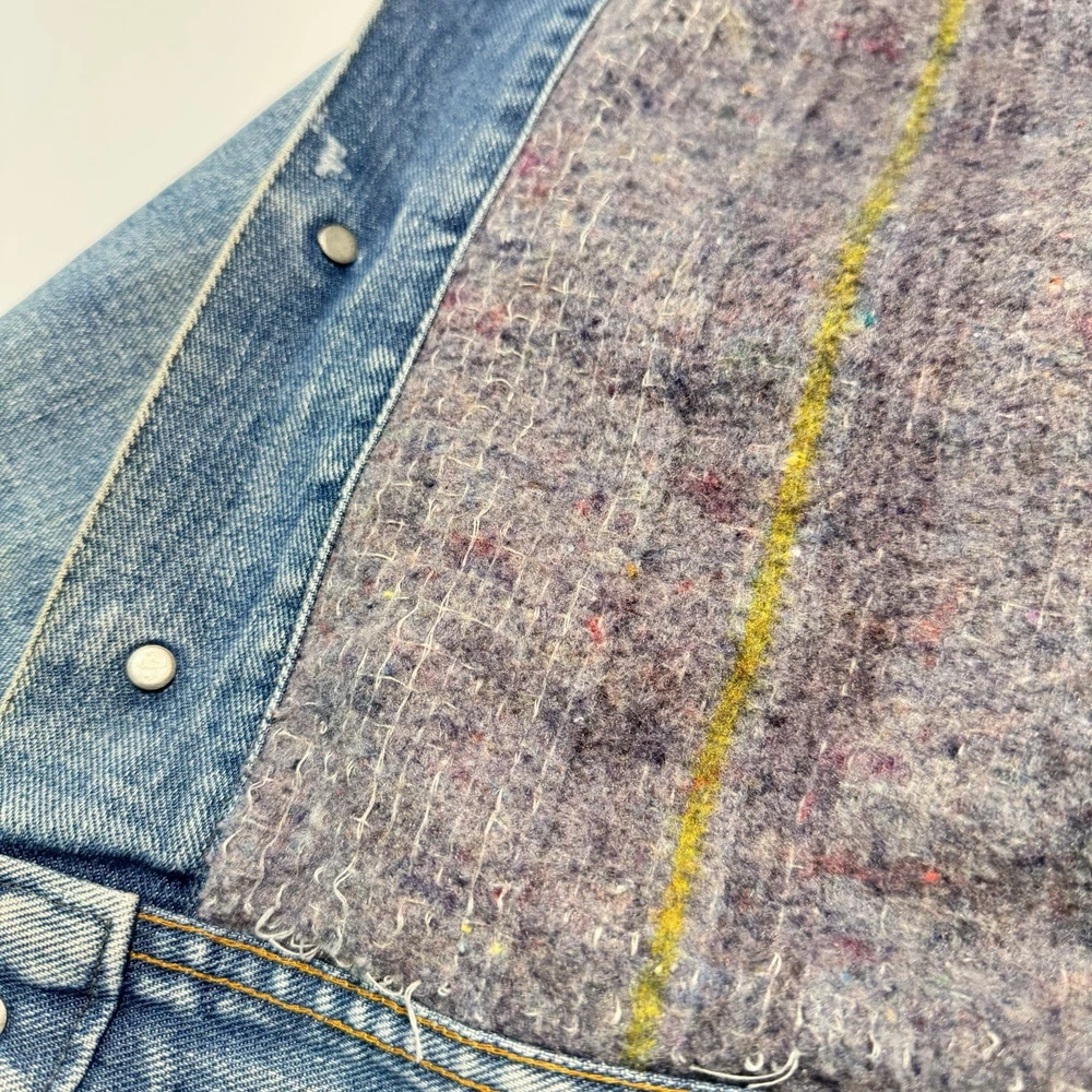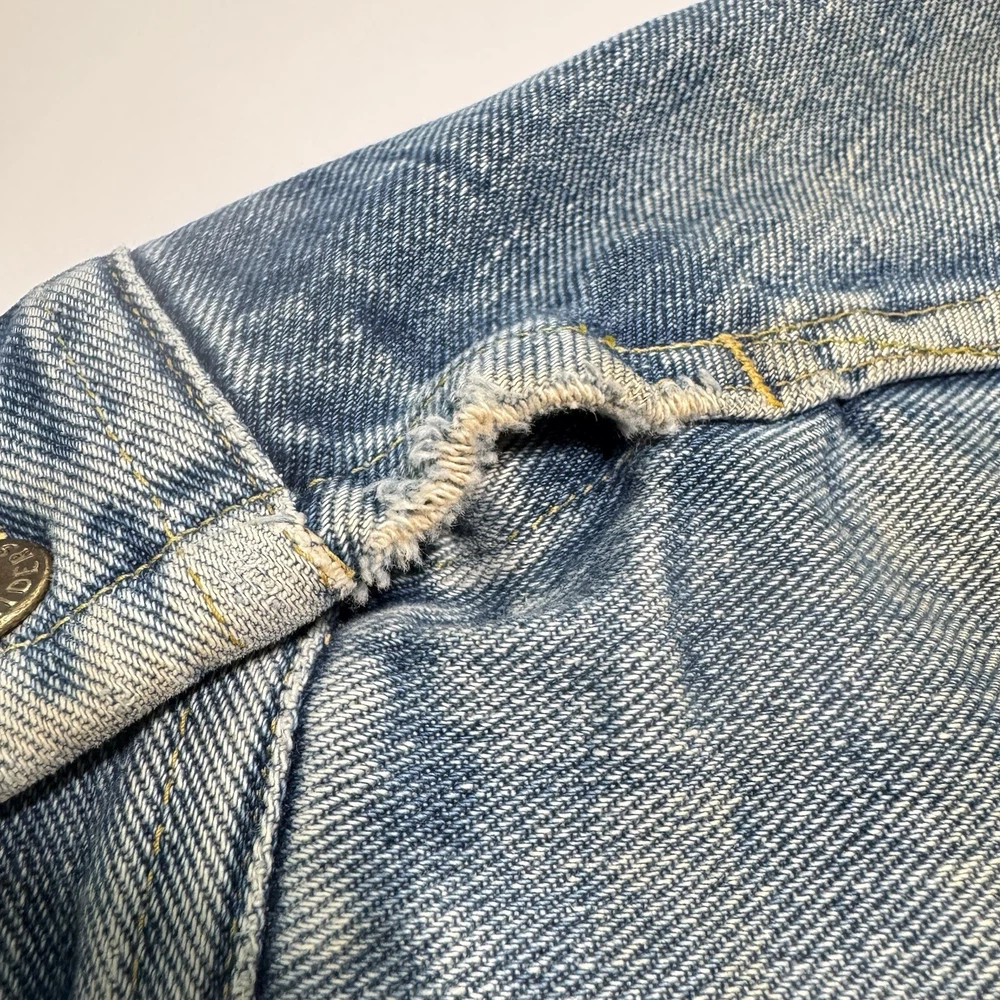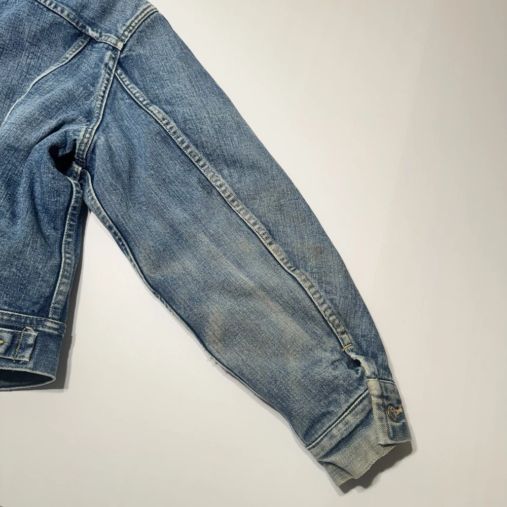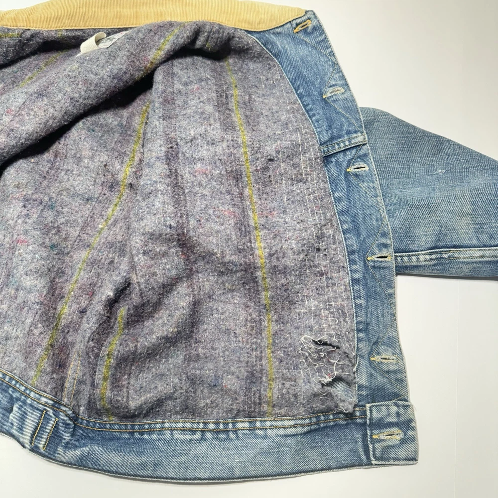 Lee Storm Rider Denim Jacket Size 50R Blanket Lined Vintage 70s Made In The USA This jacket is preowned and in good condition. Jacket has some signs of wear from use and age. Has some stains and a few small holes. Blanket lining on left bottom inside is coming apart. Getting thin going up on both sides. Collar is clean. All button are present. Denim is soft and broken in. See photos for details. Fast Shipping!!