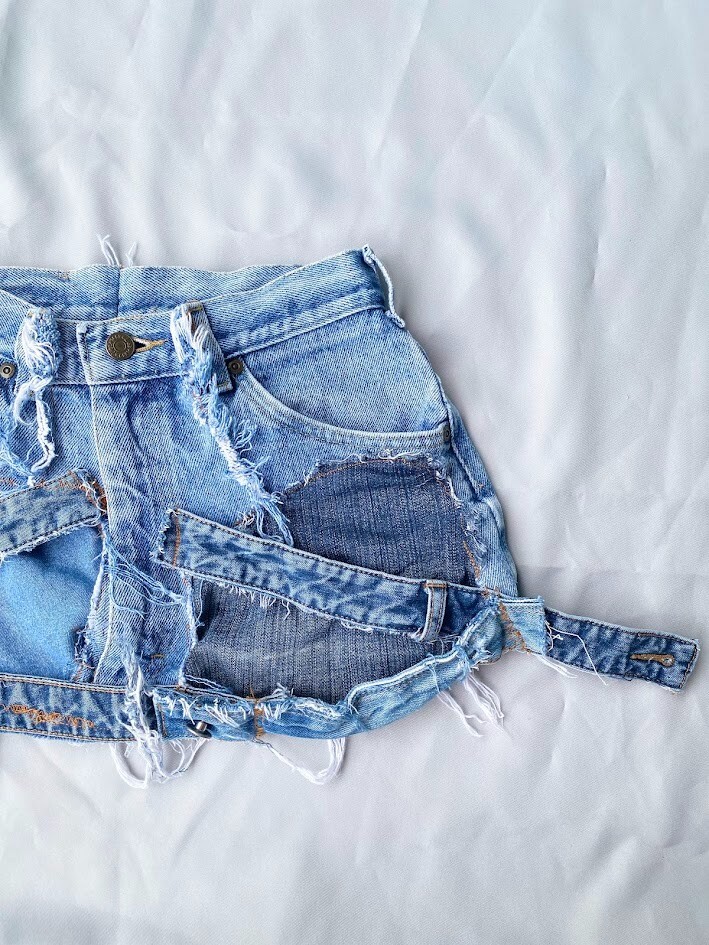 HomeLee Vintage Y2K Hysteric Glamour Kinky Ski Mini Denim Skirt Size 4 reworked (S)