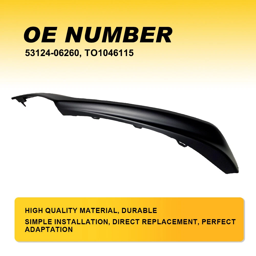Placement on Vehicle: Front, Left, Lower Fitment: For 2021-2023 Toyota Camry XSE SE gtin13: Does not apply Features: Durable, Direct Fit, Easy Installation OE/OEM Part Number: 53124-06260, TO1046115 Manufacturer Warranty: 2 Years Brand: AUXITO Color: Black Manufacturer Part Number: 53124-06260, TO1046115 Fitment Type: Direct Replacement UPC: Does not apply Type: Bumper Trim Universal Fitment: No Material: ABS Plastic