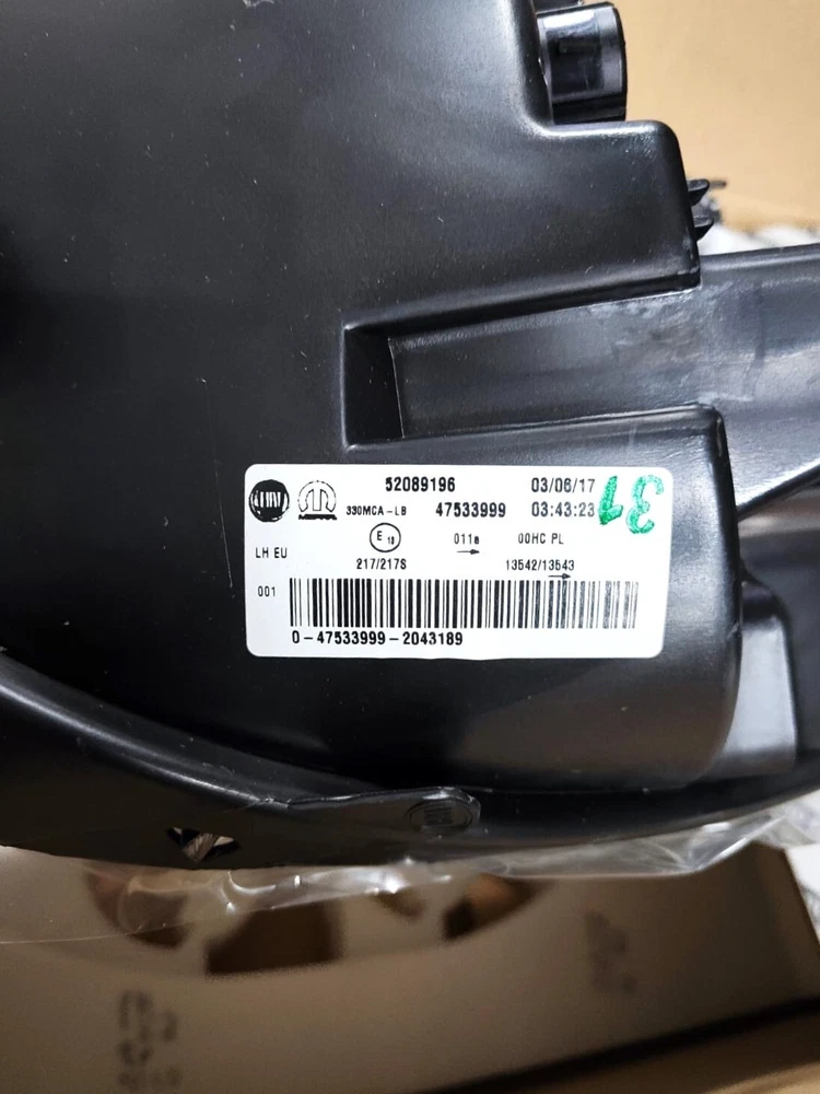 Headlamp Front Left - Fiat 500L 2017/2022- Original Fiat 52089196 The description of this item has been automatically translated. If you have any questions, please feel free to contact us. Title of the document LEFT FRONT PROJECTOR HEADLIGHT DRIVER SIDE NEW WITH PROTECTIVE FILM STILL ATTACHED FIAT 500L - 2017 / 2022 -ORIGINAL FIAT- To check the compatibility of the item with your car, or for any other information, you can contact us and we will be happy to help you! - WhatsApp The item is not shipped to the Canary Islands Title of the document LEFT FRONT PROJECTOR HEADLIGHT DRIVER SIDE NEW WITH PROTECTIVE FILM STILL ATTACHED FIAT 500L - 2017 / 2022 -ORIGINAL FIAT- To check the compatibility of the item with your car, or for any other information, you can contact us and we will be happy to help you! - WhatsApp The item is not shipped to the Canary Islands Brand Non applicabile Tecnologia di illuminazione Alogena Codice ricambio originale OE/OEM 52089196 Tipo Fanale frontale Posizionamento sul veicolo Anteriore Posizionamento sul veicolo A sinistra Marca Fiat MPN Non applicabile Caratteristiche Fari originali Codice attacco lampadina H7 EAN Non applicabile
