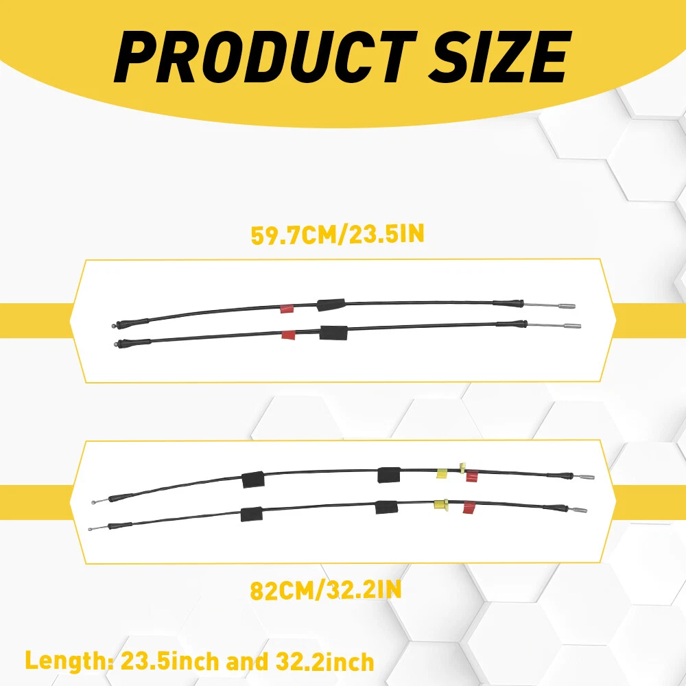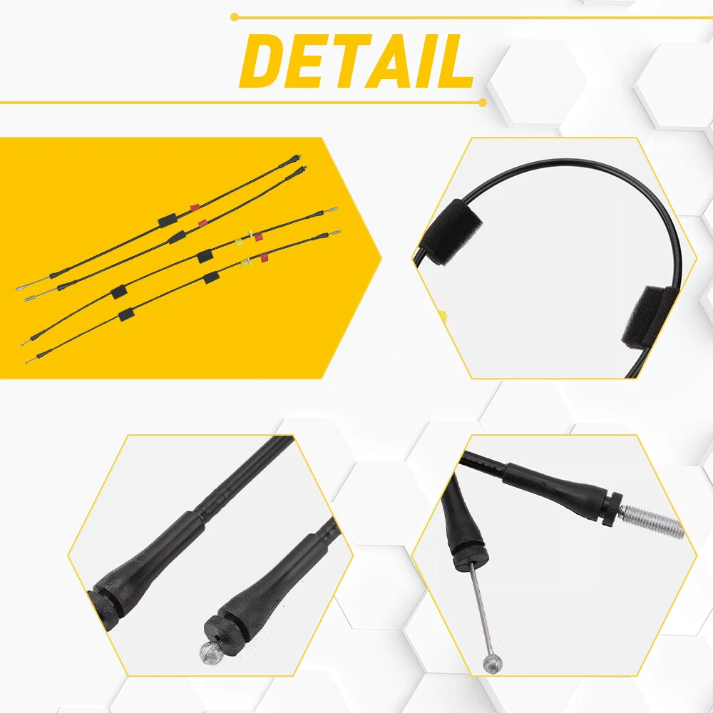 Fit for: 2004 Ford F150 Heritage 1997-2003 Ford F150 1997-1999 Ford F250 Specifications Product Material: ABS+stainless steel Length: 23.5inch and 32.2inch Placement on Vehicle: Front, Left, Lower, Rear, Right, Upper Features: *Superior Material Made of superior ABS and stainless steel with higher wear resistance to ensure its long service life and durability. *Direct Replacement Replace the old one to restore its functions for driving safety and privacy. *Simple Installation Easy installation, other modifications are not required. *Stable Performance Left Right Side Front Rear Door Upper Latch Release Cables Fit 97-03 Ford F150 M Fit for: 2004 Ford F150 Heritage 1997-2003 Ford F150 1997-1999 Ford F250 Specifications Product Material: ABS+stainless steel Length: 23.5inch and 32.2inch Placement on Vehicle: Front, Left, Lower, Rear, Right, Upper Features: *Superior Material Made of superior ABS and stainless steel with higher wear resistance to ensure its long service life and durability. *Direct Replacement Replace the old one to restore its functions for driving safety and privacy. *Simple Installation Easy installation, other modifications are not required. *Stable Performance Our door latch cables have stable performance, providing you a better shopping experience. *Satisfying Service Your satisfaction is our utmost concern, please feel free to contact us for any questions and concerns. Packaging Include: 4pcs cable ABOUT US Left Right Side Front Rear Door Upper Latch Release Cables Fit 97-03 Ford F150 M Fit for: 2004 Ford F150 Heritage 1997-2003 Ford F150 1997-1999 Ford F250 Specifications Product Material: ABS+stainless steel Length: 23.5inch and 32.2inch Placement on Vehicle: Front, Left, Lower, Rear, Right, Upper Features: *Superior Material Made of superior ABS and stainless steel with higher wear resistance to ensure its long service life and durability. *Direct Replacement Replace the old one to restore its functions for driving safety and privacy. *Simple Installation Easy installation, other modifications are not required. *Stable Performance Our door latch cables have stable performance, providing you a better shopping experience. *Satisfying Service Your satisfaction is our utmost concern, please feel free to contact us for any questions and concerns. Packaging Include: 4pcs cable FAQ Shipping Returns Contact Us Payment Why swith to LED? LEDs not only give your vehicle a clean, modern look but, with proper use, will outlast any halogen bulb and HID bulb! Low energy draw, high lumen output, and instant on/off LED technology out shines stock bulbs in every way. Which bulbs are used in my vehicle? Check Sylvania automotive lamp replacemnt guide , you can select the year, make, and model of your vehicle, then select the application you want to replace or upgrade from stock. What does CAN Bus mean? CAN Bus means Controller Area Network Bus. This system monitors your vehicle and reports operating conditions. CAN Bus systems are commonly found in European vehicles such as BMW, Audi, Mercedes, Volkswagen, Porsche, and in many American vehicles. While most late model American vehicles have CAN Bus systems, it is always good to check with your vehicle dealer to see which system your vehicle has before purchasing electrical products. When do you need Warning Canceller? Some vehicles with cmplex internal computers(such as Audi,BMW,Jaguar,Mercedes,etc.) might report on-dash errors or flickering on the headlights. The warning canceller fixes the dashboard warning and flickering effect. Bulb Out Dashboard Error: On some vehicles, the dashboard will report as if you have a headlight bulb missing or burnt. It does not affect the headlights functioning, but the light on-dash will be on. The warning canceller fixes the issue. Flickering Issue: This happens when your vehicle does not recognize the new headlights installed. When turning the headlights on, the vehicle's computer does not understand the signal back from the headlights hence thinking they are still off. This triggers the headlight flickering effect. The warning canceller solves this issue. LED Advantages: Very low and efficient energy consumption than halogen bulbs & HID Bulbs Compared with HID bulbs, LED bulbs Light up instantly, no warm up period Low voltage protection, high precision constant current driver chip Longer lifespan than HID and halogen bulbs Light can be controlled easily in color and intensity Easy to install a LED headlight conversion kit (1) We will ship your item(s) within 24 hours. (2) We ship this item to US only via USPS first class mail. It usually takes 3-6 working days to deliver. How Long Will It Take to Receive My Refund? If you have emailed us for a refund ,once we have approved it ,after 60 days your money will be refunded. The estimated time for the refund to appear in your account is based on the payment method you use. Paypal is the only supported in NIGHTEYE Store. Please notify us within 30 days after you've received your purchased item. All return requests must be submitted through your eBay account. NOTE: Buyers pay for the return shipping fee. Items to be returned must be in resalable condition, for example: You do not satisfy the item quality Item do not fit your vehicle perfect Item can not reach your expectation The item arrived be broken You do not receive the item Parcel Lost Receive the wrong item If you have problems with the above issue, please Contact Us immediately ! [Our office hours are MONDAY - Saturday 9:00PM - 6:00PM PST, but we will response you once we get your message .There will be some delay on respons if you send message or E-Mail on Sundy.] (1).Negative feedback will not help resolve any problems you have, please contact us via eBay messages before leaving negative feedback, our customer service will make best effort to help you with the issues. (2).We maintain high standards of excellenceand strive for 100% customer satisfaction! Feedback is very important to us. We reque