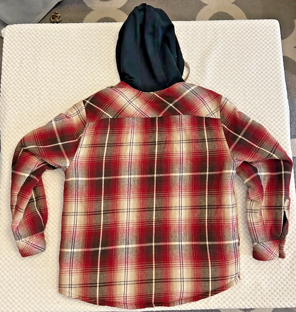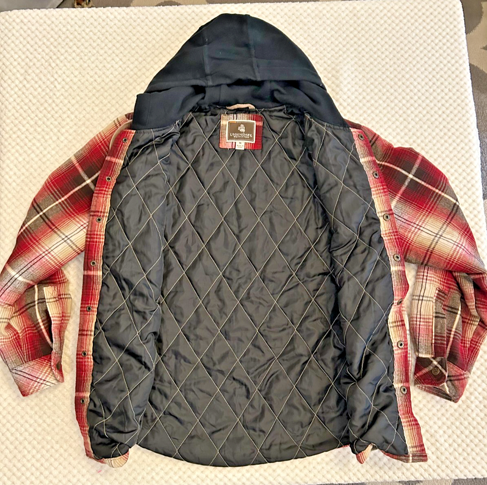 The Legendary Outfitters Men's Shirt Jacket in Multicolor Plaid Flannel with a Quilted Lining is a stylish and functional outerwear option for casual occasions. Made from 100% cotton flannel, this button-down jacket features a comfortable regular fit with a short length perfect for outdoor activities like walking and hiking. The breathable fabric and hooded design make it suitable for winter, fall, and spring seasons, ensuring you stay cozy and stylish in colder weather. Whether you're heading to the campsite or hanging out with friends, this shirt jacket is a versatile addition to any man's wardrobe.