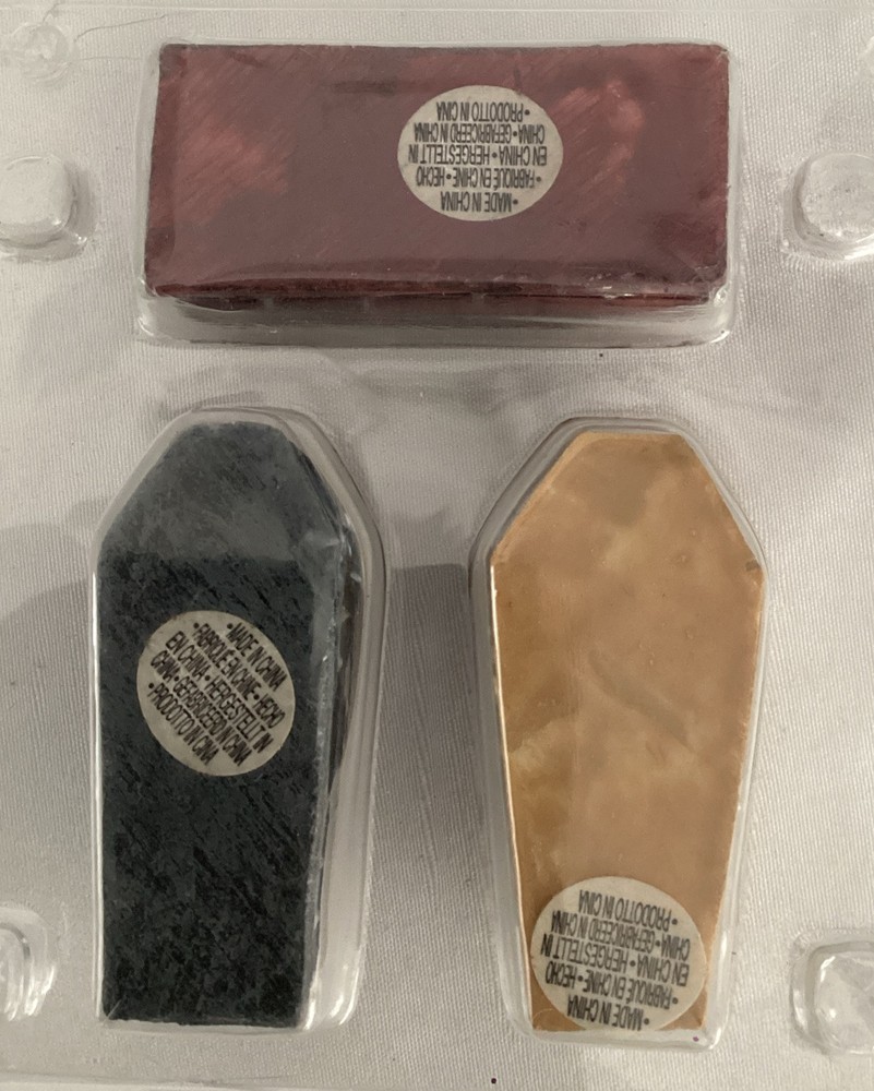 These mini coffins are a must-have for Halloween displays! The detailed resin designs bring spooky charm to any Spooky Town setup. Perfect size, vibrant colors, and great quality—they instantly elevate my haunted village. Love the eerie cemetery vibe they add!