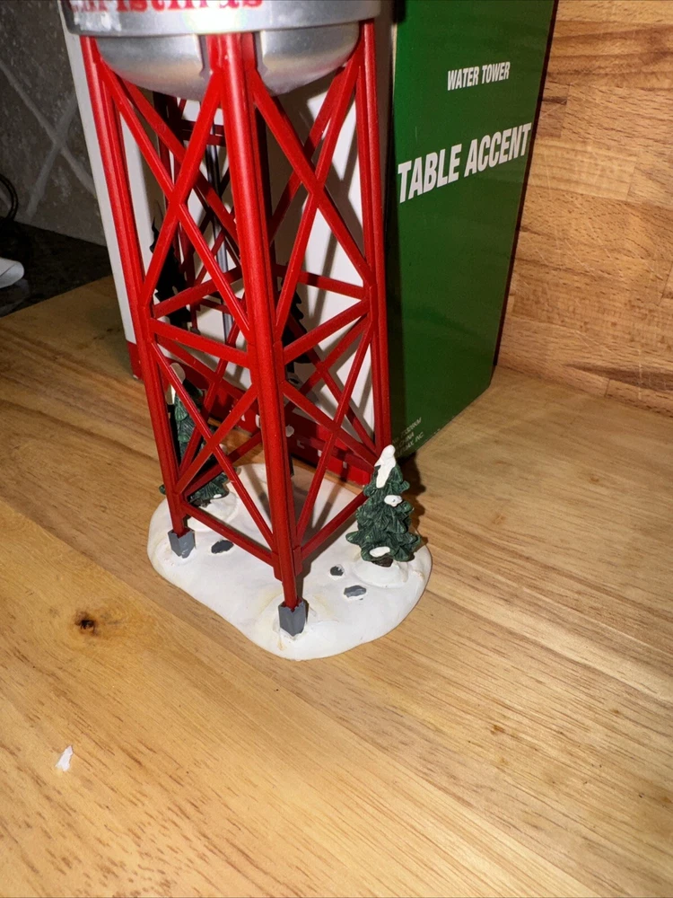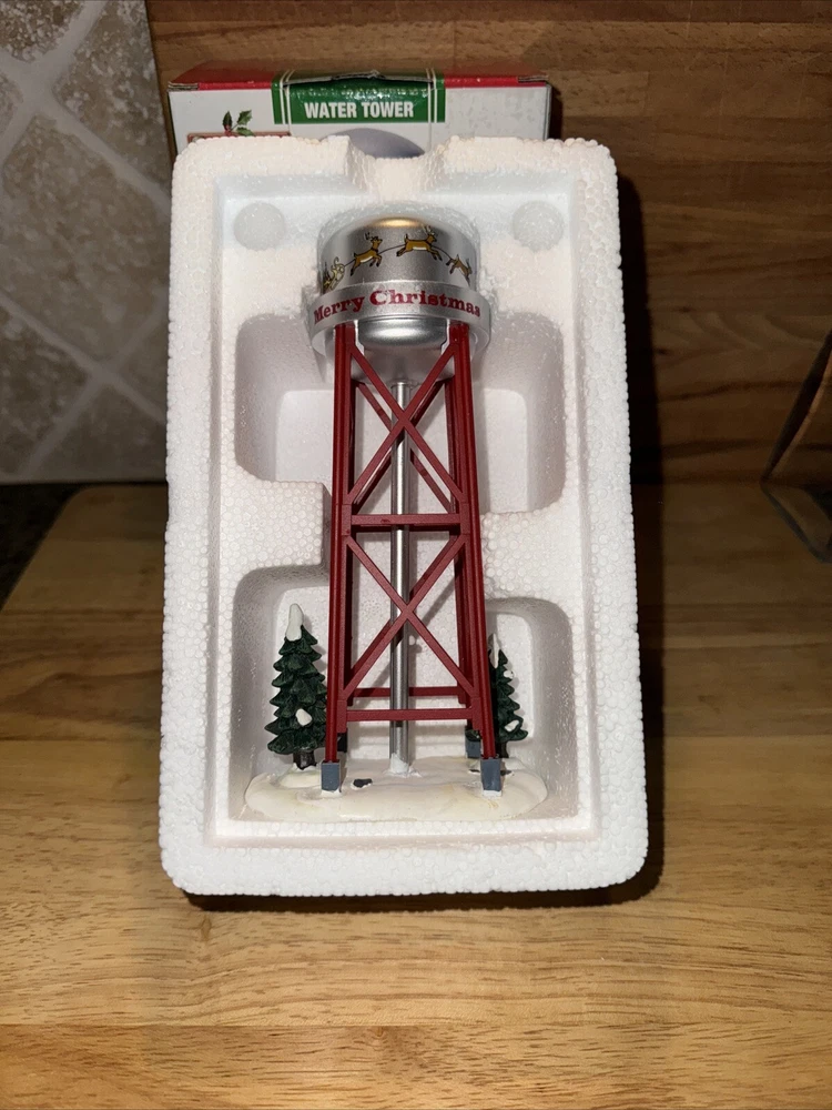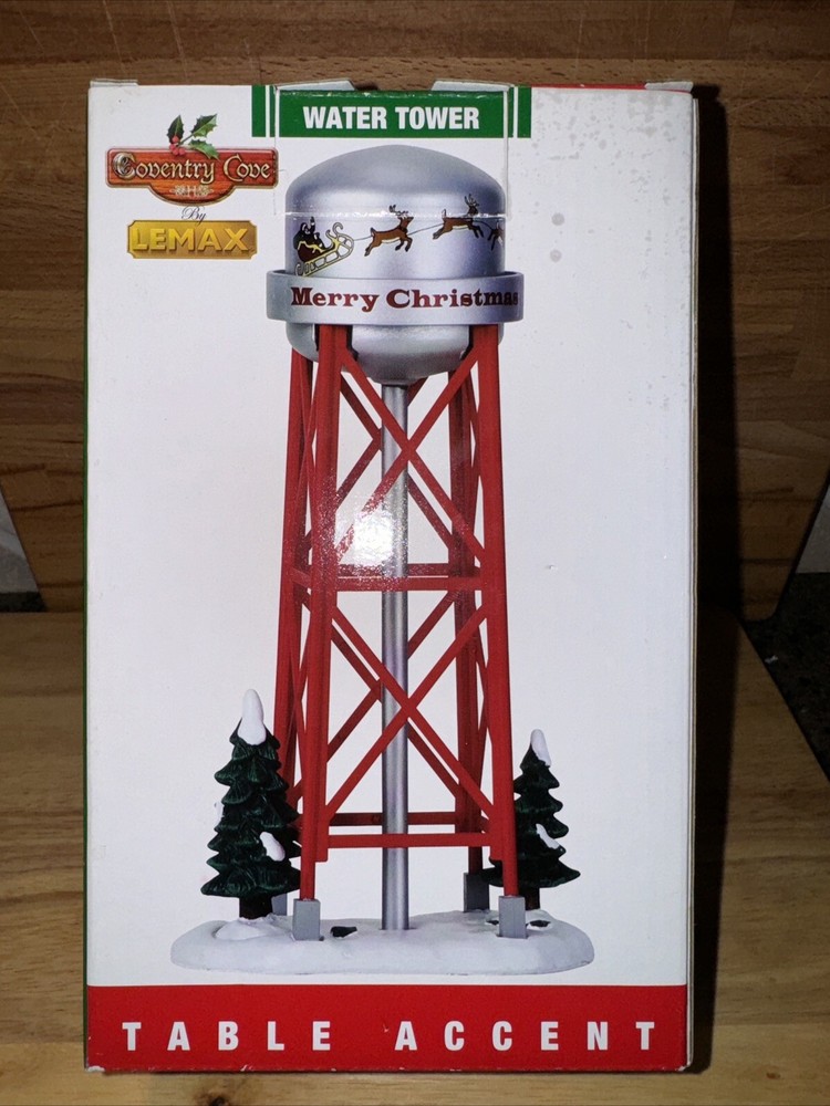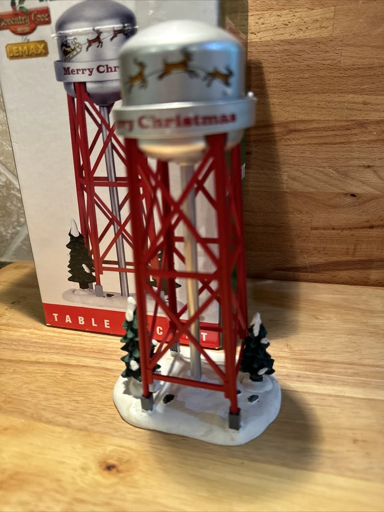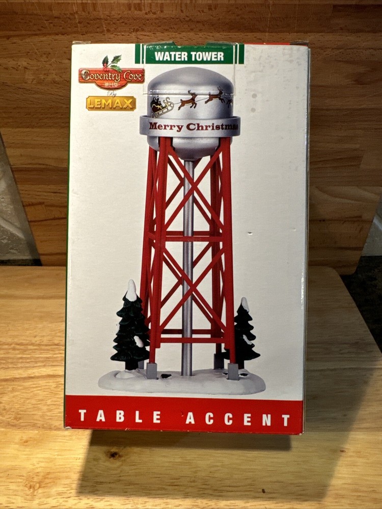 In very good condition, box is in great shape, slight discoloration at the base of the tower, due to having been displayed, see photos. Add a touch of holiday magic to your Christmas Village with this Lemax 7" Water Tower Table Accent. Featuring a jolly Santa and his reindeer, this original piece from the Coventry Cove collection is sure to delight collectors and fans alike. The item is packaged in a box, making it an ideal gift for any occasion. Crafted with care and attention to detail, this Christmas Village piece is perfect for adding a touch of whimsy to your holiday decor. Whether you're a seasoned collector or just starting out, this Lemax piece is a must-have addition to your collection. Don't miss out on the chance to bring a piece of Christmas magic home today!