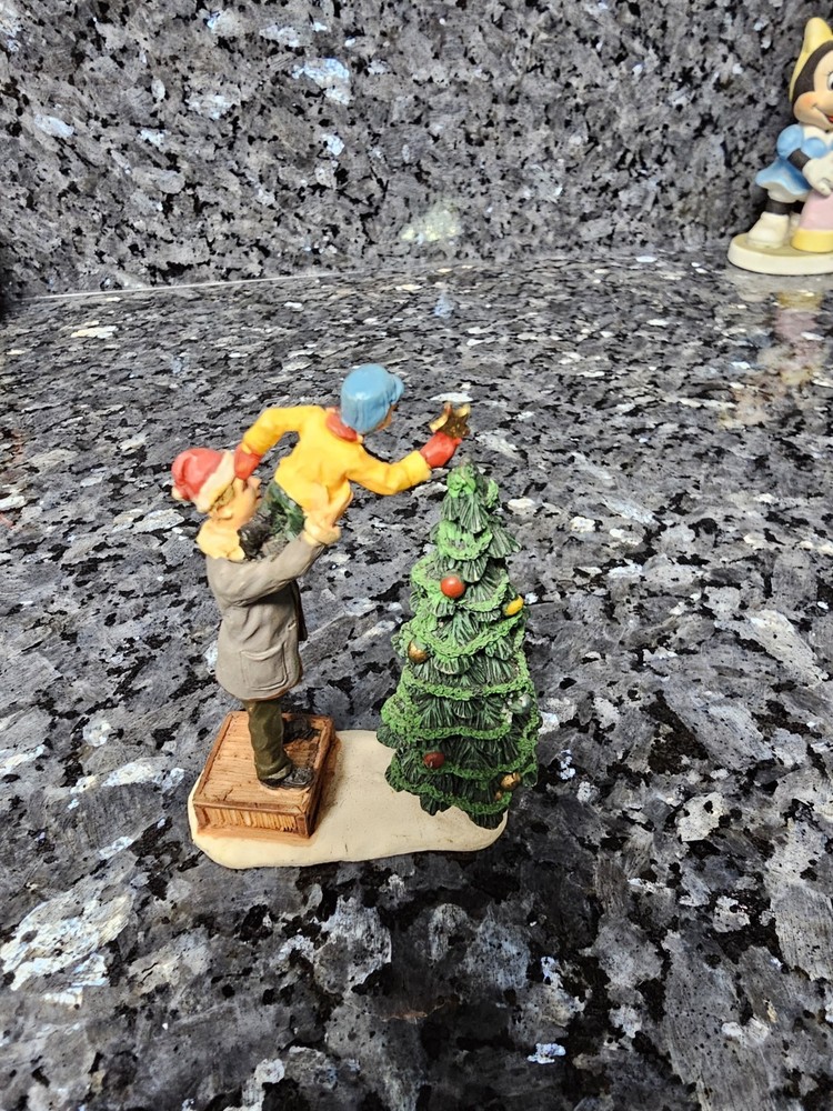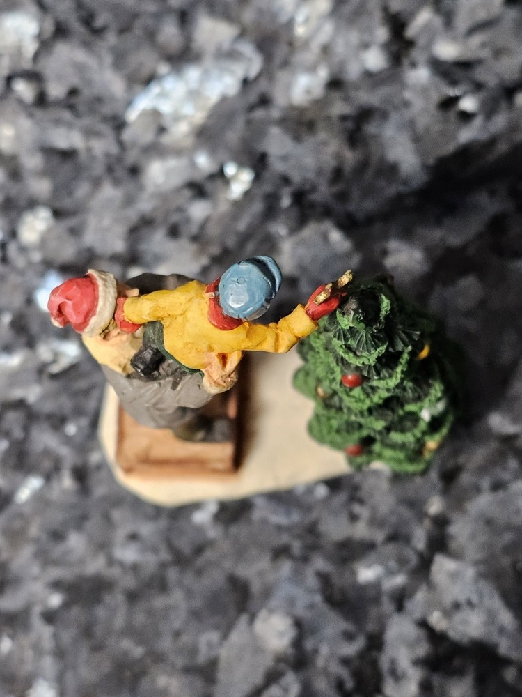 Add a charming touch to your holiday decor with the Lemax Christmas Village People Decorating Christmas Tree with Kid Figurine. Crafted with meticulous attention to detail, this miniature piece features vibrant multicolors and intricate designs that bring the warmth of the season into any room. Pre-owned very good condition some slight fading on Santa hat. see all photos
