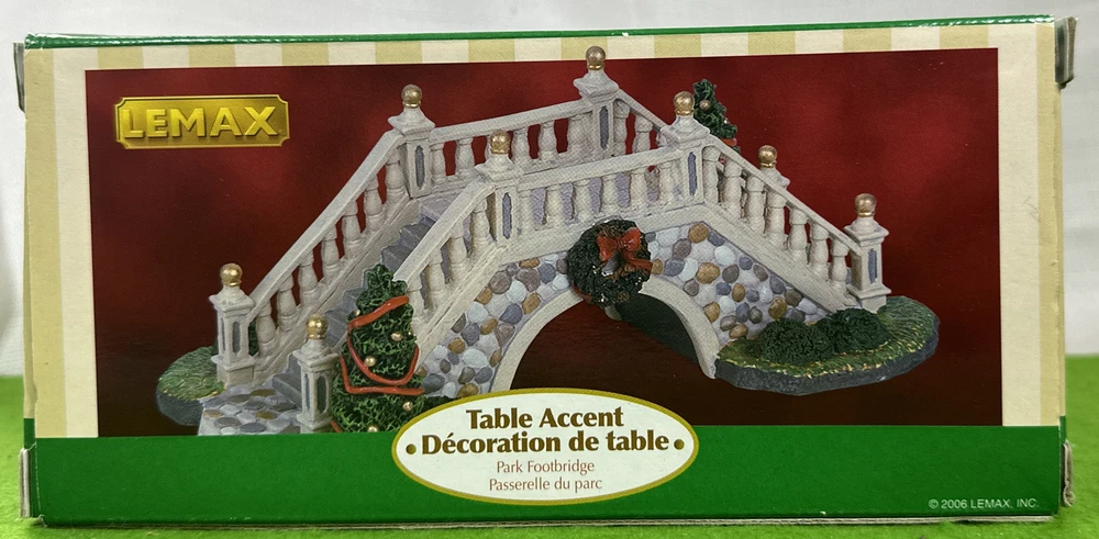 Lemax Christmas Village Accessory Table Accent ~ Park Footbridge ~ Looks never displayed. original box and insert. Please check out all of the pictures for full details. *Be sure to check our EBAY store for dozens of other accessories as well as hard to find buildings. We have most all village brands, holidays and series. Hundreds of buildings and accessories. Contact me with any questions or additional photos. Visit my store for more great items. YES I DO COMBINE SHIPPING . JUST LET ME KNOW AND I WILL SEND A NEW INVOICE OR REIMBURSE ANY EXTRA THAT IS PAID IF SHIPPING ON SAME DAY. FOR AUCTIONS LET ME KNOW YOU ARE WAITING ON MORE TO END AND I WILL HOLD OFF UNTIL YOU TELL ME KNOW YOU ARE DONE. We DO NOT SHIP TO P. O. BOXES for heavy or large items. WE NEED A PHYSICAL STREET ADDRESS TO SHIP. ***** International Buyers – Please Note: · Import duties, taxes and charges are not included in the item price or shipping charges. These charges are the buyer's responsibility. · Please check with your country's customs office to determine what these additional costs will be prior to bidding/buying. · These charges are normally collected by the delivering freight (shipping) company or when you pick the item up – do not confuse them for additional shipping charges. 3 Day guarantee shipping is through eBay not my store. I ship all items on the next business day. I can not control how long USPS or FedEx takes to deliver the item. Many of the items I sell are pre-owned and have had a past life unless otherwise indicated. Normal wear can be expected. I make every effort to point out any obvious problems. Please keep in mind the age of the item and that there may be some slight flaws from time to time. Please check out all photos for full description. I try to take photos of all areas and all issues.