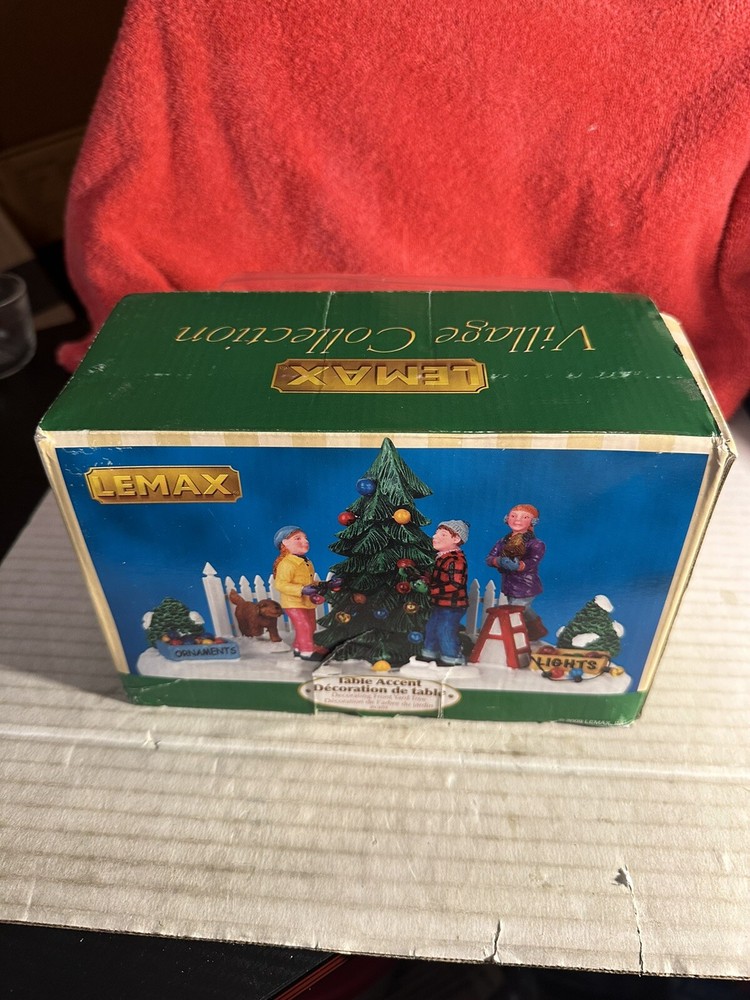 This beautiful Lemax Village Collection Christmas Table Accent depicts a lovely family scene with a festive tree, twinkling lights, and their adorable furry friend. The intricate details and painted finish make it a must-have for any collector or lover of seasonal decor. Crafted from high-quality resin by skilled craftsmen in China, this original and retired figure is a perfect addition to your Snow Village collection. The timeless design, with a color scheme of white and a touch of green, suits any occasion and is especially perfect for holiday celebrations. Bring the joy and warmth of the holiday season into your home with this charming figure. Tote 138