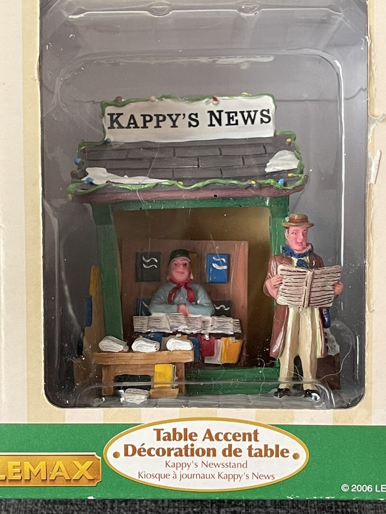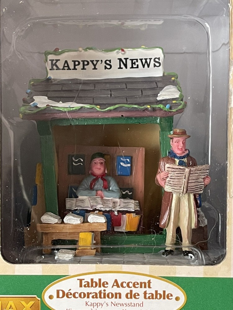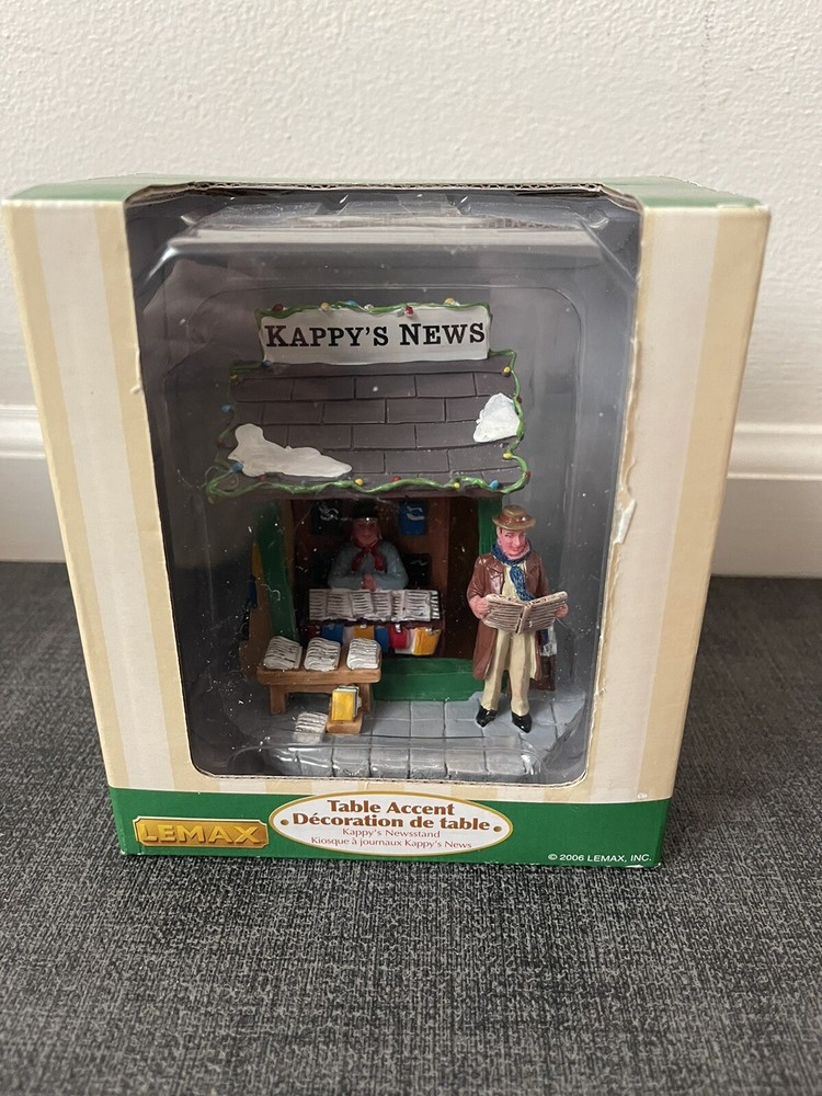 Add a unique touch to your Christmas Village with this LEMAX Table Accent Newspaper Stand. Designed by Lemax, The stand is part of the Snow Village collection and is perfect for any room in your house. This traditional style stand is packaging in a box and does not require any additional parts. It is a great addition to your seasonal theme and is perfect for adults. The stand measures 3 1/2" in length and 4 1/2" in height and width. Get your hands on this charming piece to add to your collection today! ****It is new but the box is showing some wear! **** Please look over the pictures before purchasing