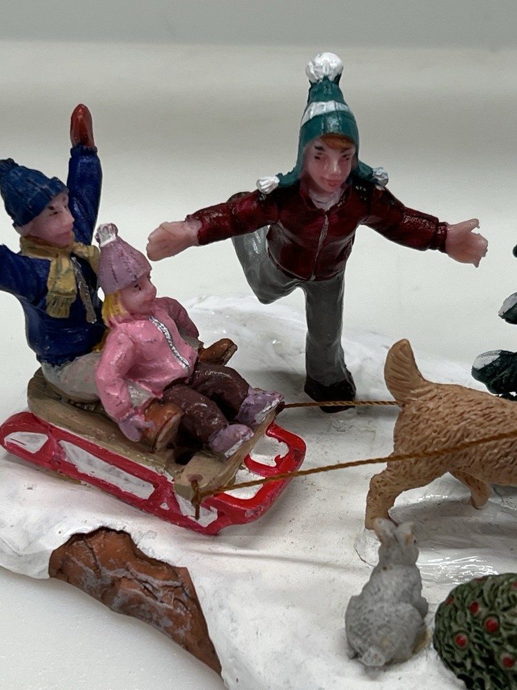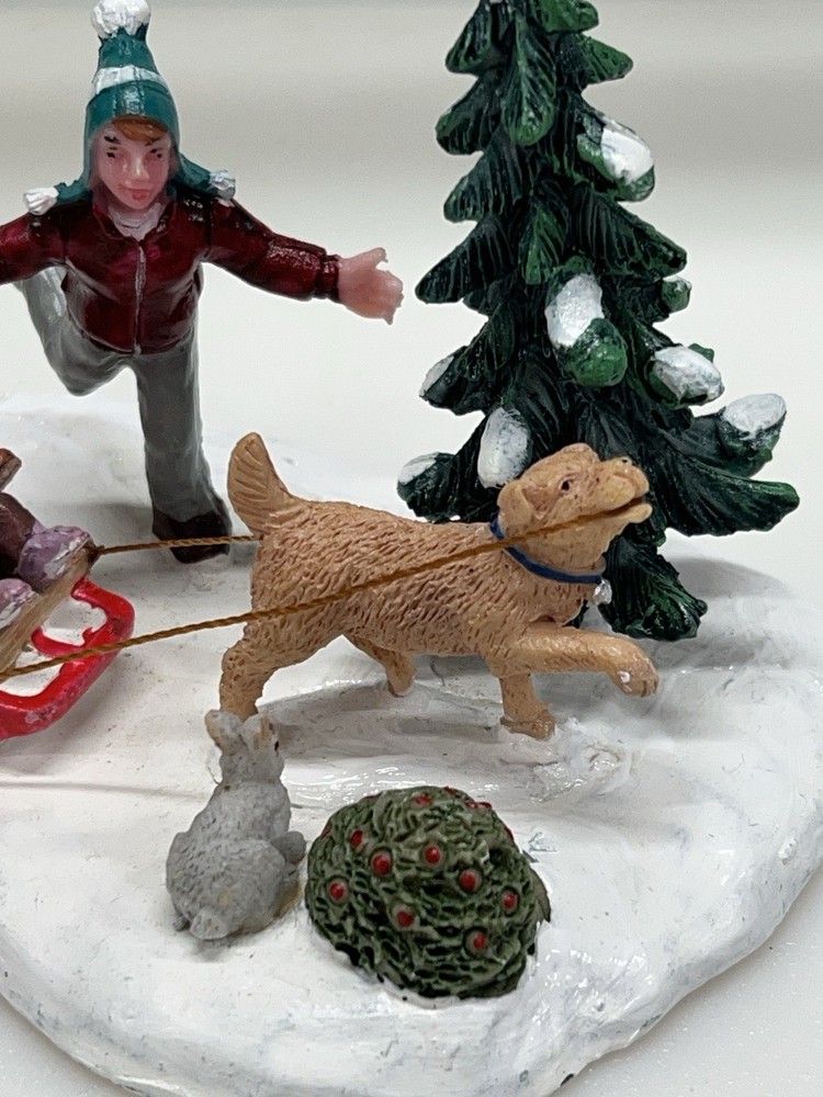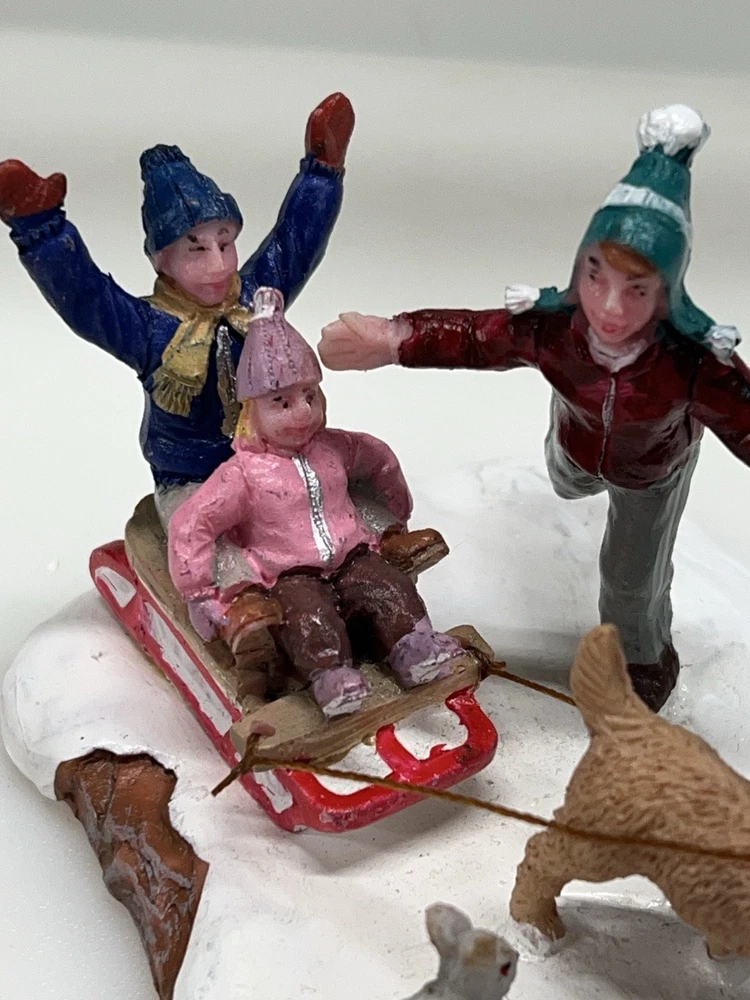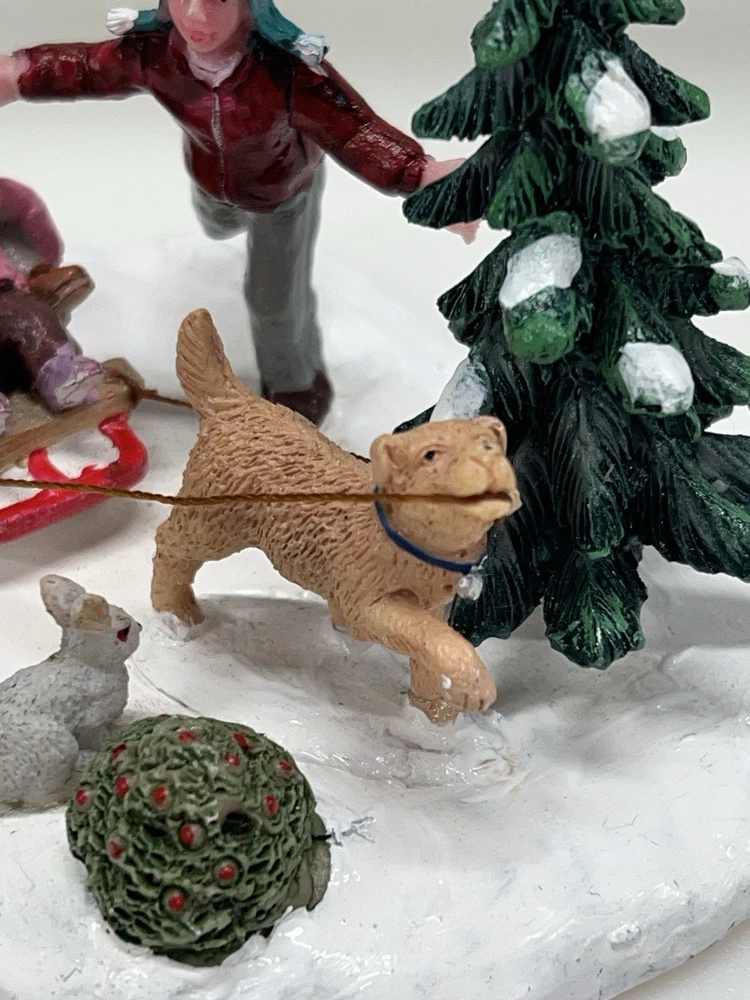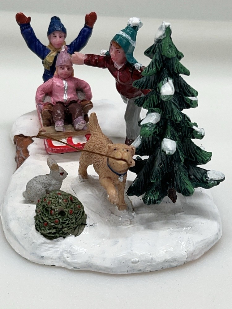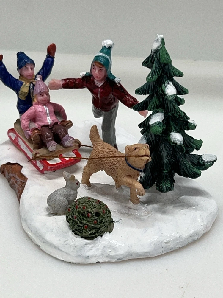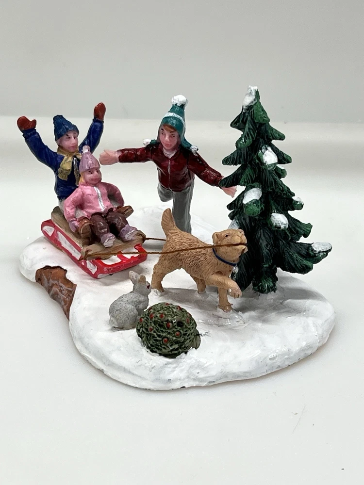 Lemax's "Rover Takes Charge" is a charming addition to any winter village display. This asymmetrical, medium-sized figurine features a whimsical family enjoying winter fun. The multicolor, painted finish and mixed materials used in its construction add to its traditional style. The item is boxed and suitable for any room, making it a perfect collectible for adults who enjoy seasonal village displays. The character, Rover Takes Charge, is part of the Village People Winter Fun character family and was manufactured in China in 2010-2019. This original item is part of Lemax's Village collection and is perfect for those who enjoy the winter season. Excellent condition