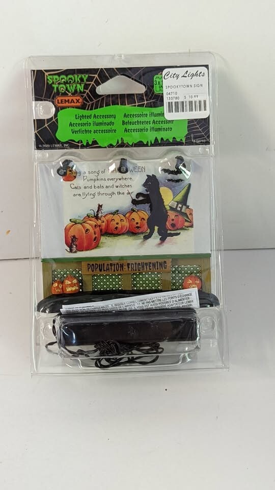Please ask any questions before making the purchase. New. Custom Lemax Spooky Town Lighted Billboard Vintage Black Cat Sing a song of Halloween . Approx. size (H x W x D) 4 4 .29 x 4.72 x 1.02 inches 1 10.9 x 12 x 2.6 cm S/H FOR THIS ITEM WILL BE $10.00 IN THE STATES AND WILL INCLUDE DELIVERY CONFIRMATION. ALL SHIPPING IN THE STATES WILL BE DONE USPS, FIRST CLASS OR PRIORITY!