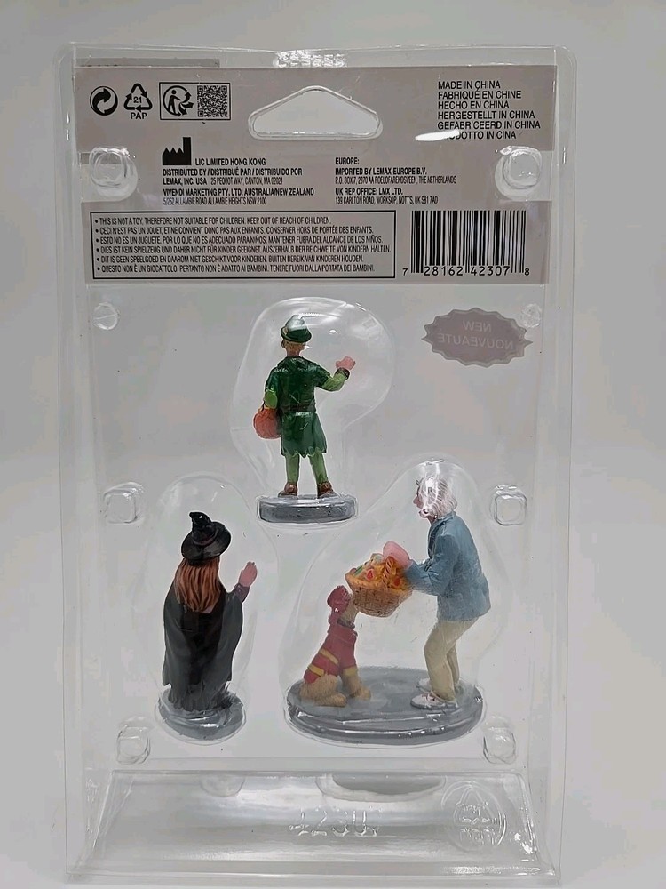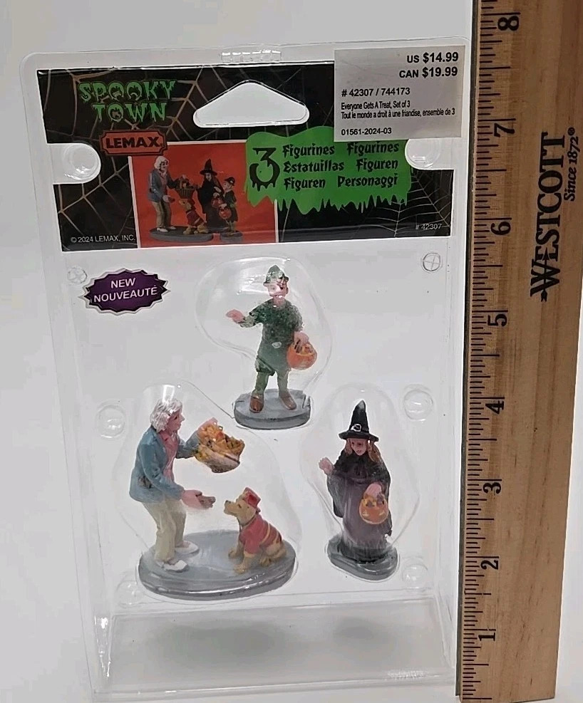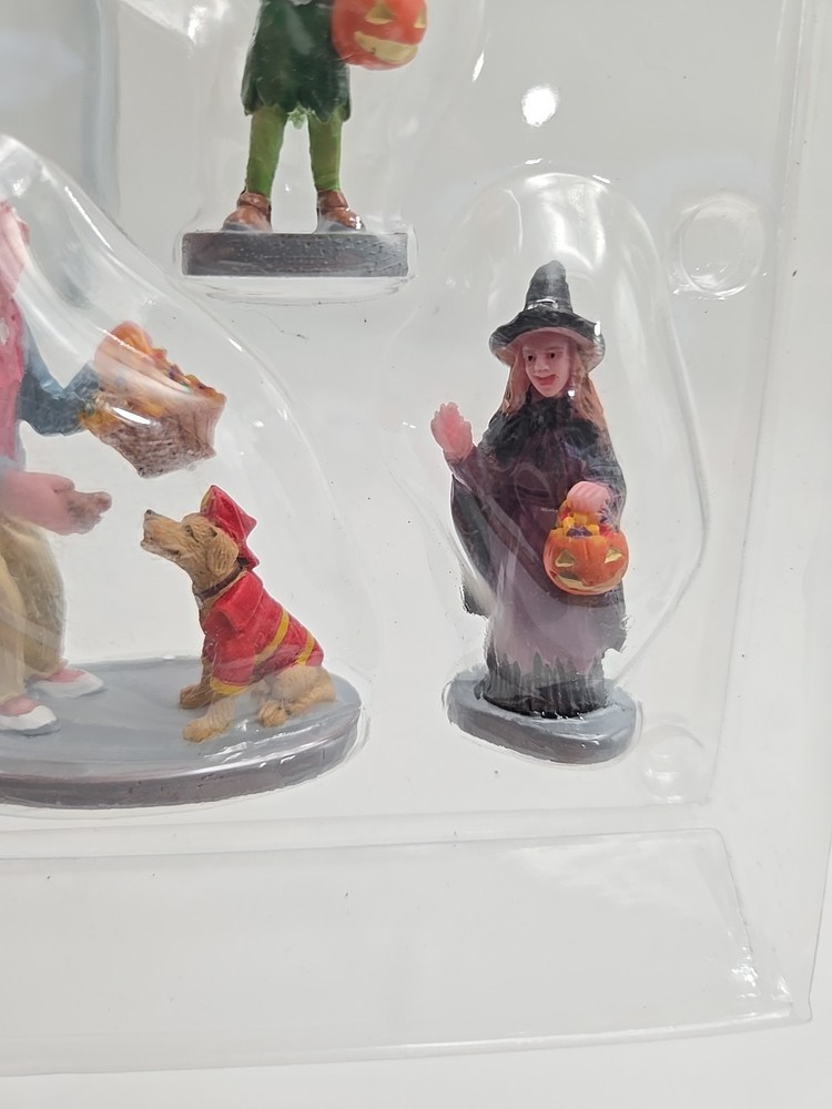 Add a spooky touch to your Halloween village with this set of three Lemax® Spooky Town® figurines. Featuring the popular trick or treaters, this miniature collection is perfect for collectors and holiday enthusiasts alike. Each figurine is expertly crafted with a treated finish to create a unique and detailed look. The perfect addition to any Halloween collection, these figurines will surely bring a smile to your face. Don't miss out on the chance to add this highly sought-after set to your collection. Get your Lemax® Spooky Town® Everyone Gets a Treat 3pcs. Figurines today and start creating your own Halloween village! New in package. See photos for details as they are part of my description. Message me with any questions you may have. Thank you, and please take a look at my other items. V-7