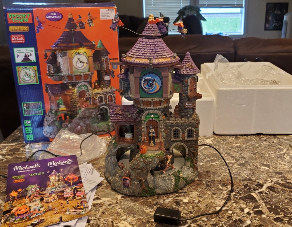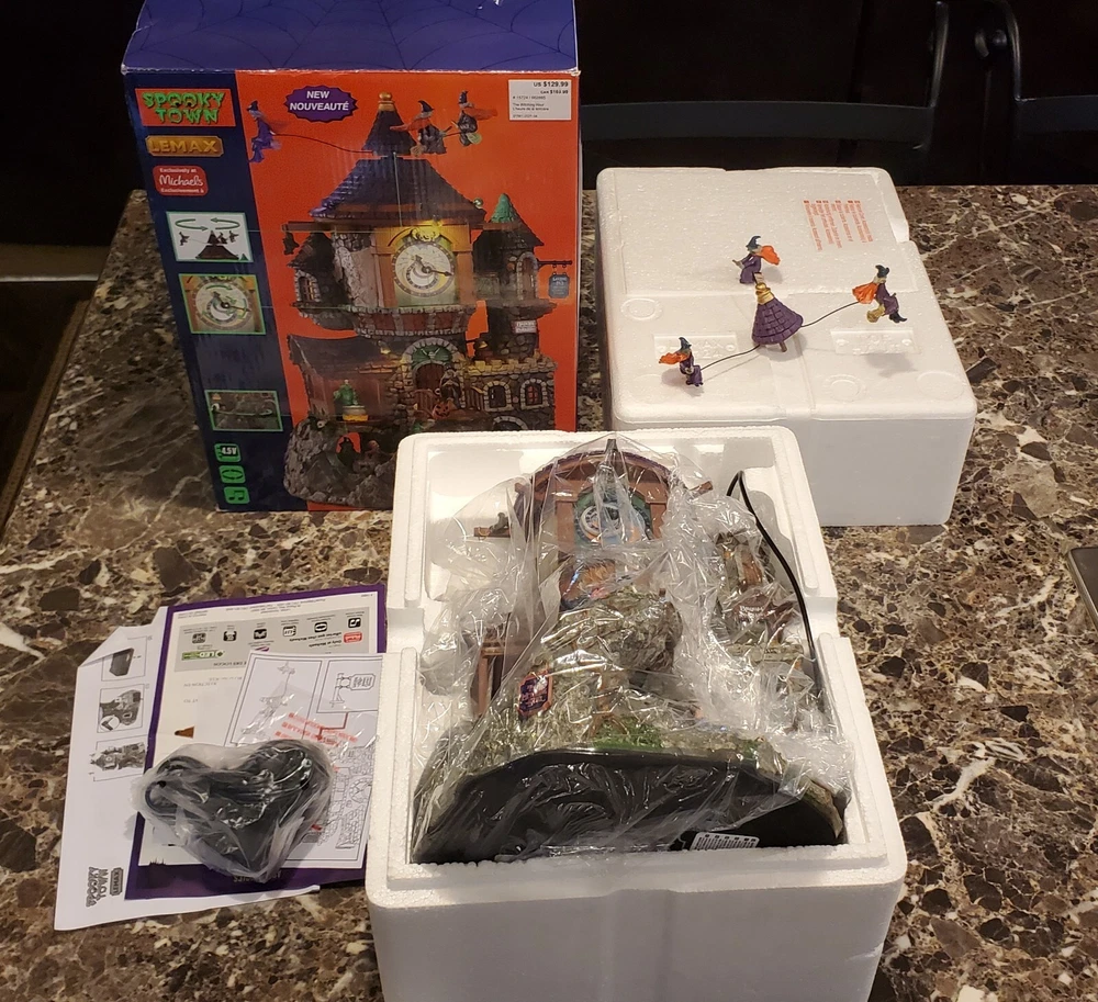 This works perfect with no issues whatsoever..I don't have the small launching pad sign that goes on right side of the house..this is in excellent condition same with the original packaging box..any other questions be sure to message me before buying..all orders are shipped within 24 hours after payment is received This Lemax Spooky Town piece features a witch's house with a round shape and a multicolor pattern. It is made of polyresin material and is illuminated, making it a perfect addition to any Halloween decor. The piece comes in a box and is an original, not a reproduction. The Witching Hour Halloween decoration is a great addition to any room and is perfect for adults. It is a 21st-century piece, manufactured in 2021, and is part of the Animals collection. The decoration is packaged in a box and is perfect for any occasion, especially Halloween.