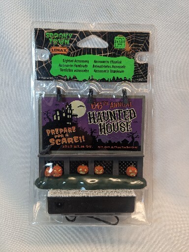 Lemax Spookytown Haunted House Billboard - 34075. New in a factory sealed package. The first photo is a factory picture. See pictures for item. I have many lemax listed and will combine shipping if purchased at the same time. Just purchase all items but don't pay. I will then send you an invoice with combined shipping. Message me with any questions. Thanks