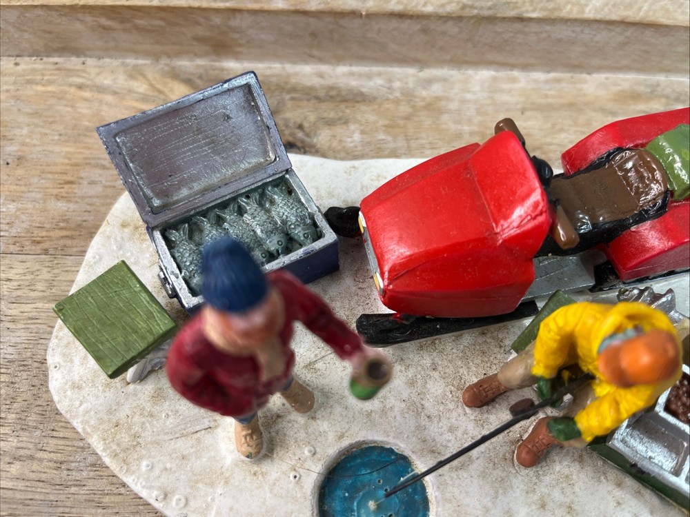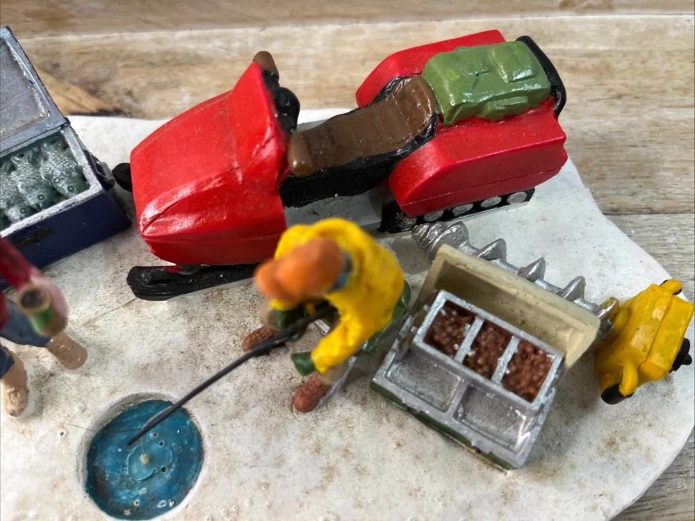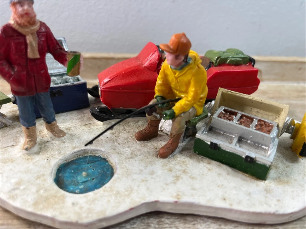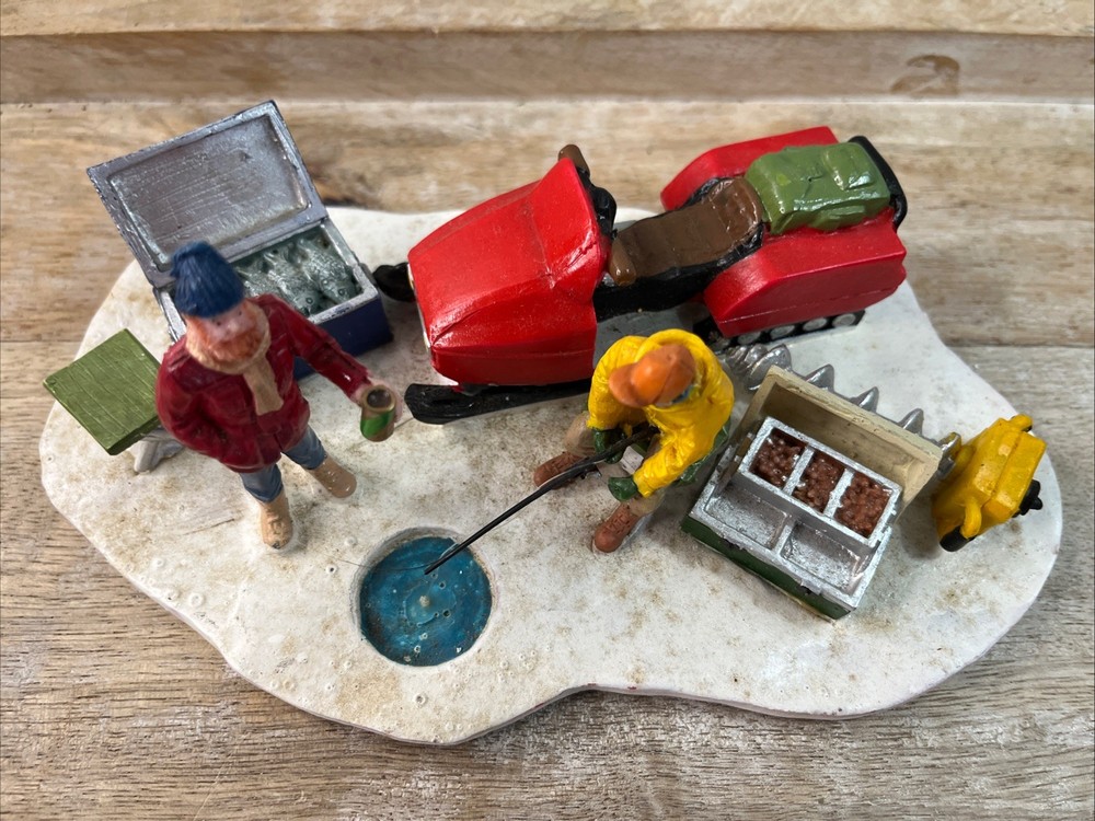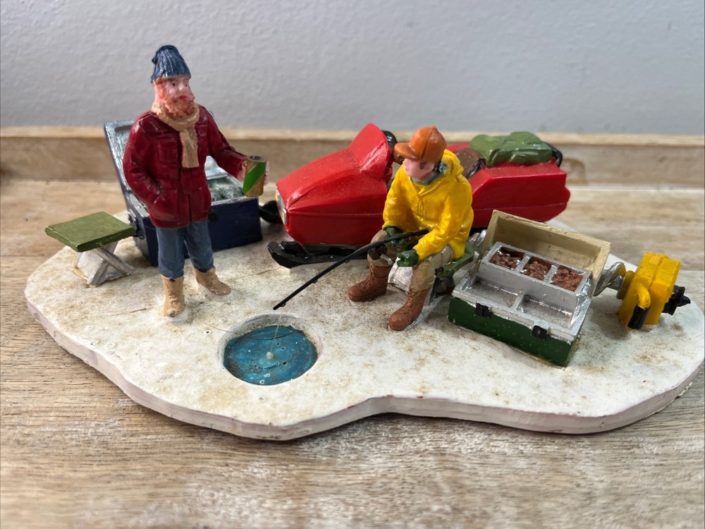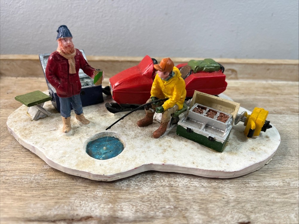 Add a touch of winter fun to your holiday decor with this charming Lemax Ice Fishing Accent. Part of the popular Lemax collection, this piece features intricate detailing and realistic design, perfect for creating a cozy winter scene in any space. Whether you're an avid collector or simply looking to add some holiday cheer to your home, this Lemax Ice Fishing Accent is sure to delight. With its festive colors and playful design, this piece is ideal for highlighting your Christmas decorations. From the characterful Ice figurine to the detailed fishing accessories, this accent is sure to bring a smile to your face and warm your heart. Celebrate the season with this charming Lemax Ice Fishing Accent and create a holiday atmosphere that will last all year long. Pre- owned with box. A12.