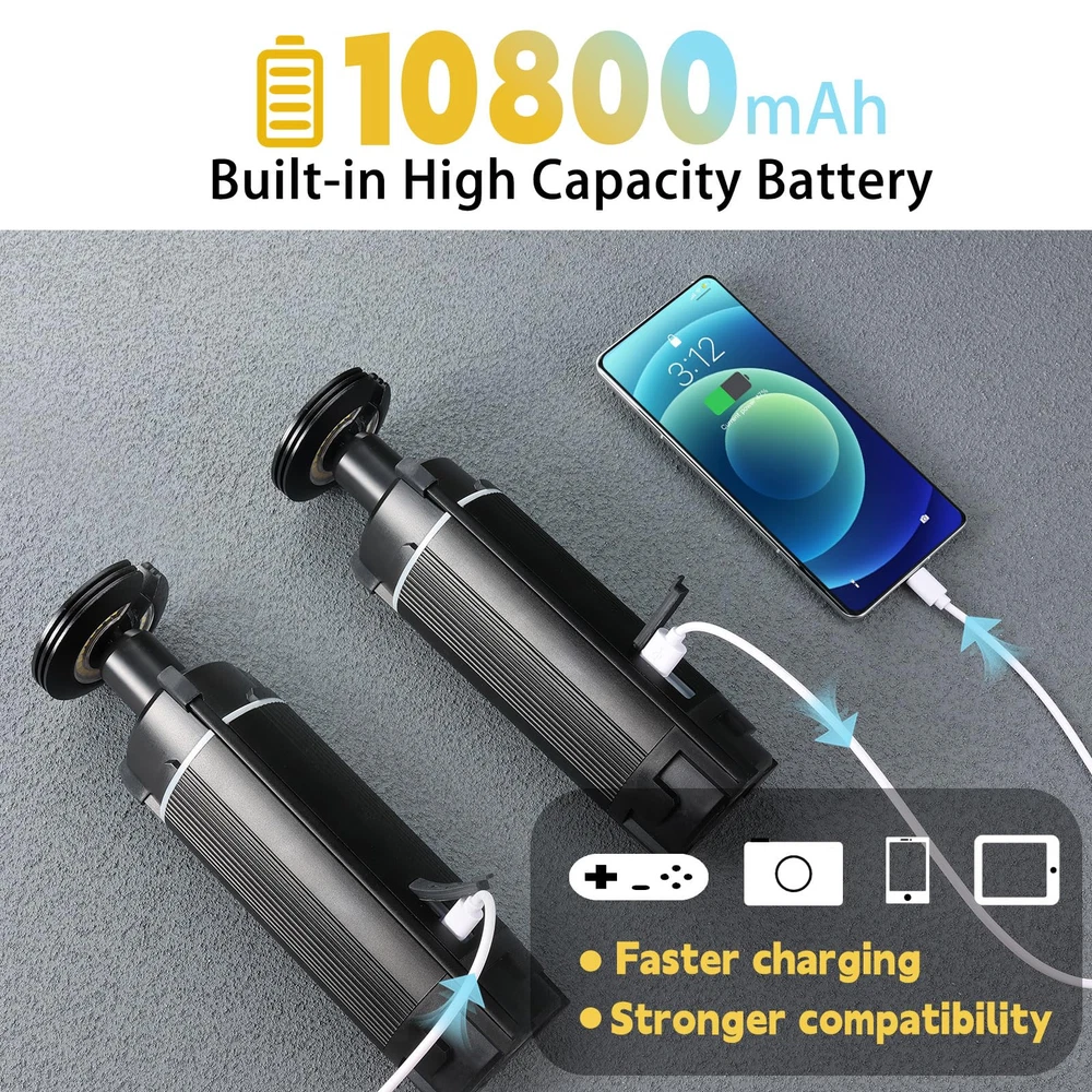 TELESCOPIC & SWIVELING: Rechargeable camping light combines telescopic, foldable and swiveling functions in an integrated design. The height of the camping lantern can be changed, the overall length of the camping light can be extended to 34.25 inches at the longest, and can be folded down to 8.6 inches at the shortest, which makes it easy to store and carry. In addition, the lamp head can rotate 360 degrees. It is very convenient to use and is a camping gear must-have! HIGH CAPACITY BATTERY: Built-in 10800mAh high-capacity rechargeable battery, fully charged in only about 5.5 hours. It can work continuously for more than 11 hours in strong light mode and more than 18 hours in low light mode. Also comes with a USB-Type C cable for charging your cell phone or other electronic devices. The portable LED light can also be used as an emergency backup power source in the event of a hurricane or power outage. 3 LIGHTING MODES: The camping lantern adopts COB lamp beads, which are high brightness, long life, and energy-efficient. Short press the power button to switch to 3 levels of brightness: Strong Light - brightness 800LM; Low Light - brightness 350LM; SOS - flashing light. Whether in a room, studio or outdoors, this multifunctional camp light provides high-quality illumination. PORTABLE & WATERPROOF DESIGN: This telescoping camping light is lightweight and easy to carry, an essential equipment for camping. Waterproof design allows for normal use in extreme weather conditions. Not only can be used as an indoor ambient light, flashlight, work light, SOS light, but also perfect for hiking, fishing, hunting, night walks, auto repair and power outages. STABLE STRUCTURAL: Metal tripod structure with a lock/unlock button design for more stability, making the electric lantern can be firmly placed on any ground and environment. Even in dimly lit environments, you can easily work independently! BUY WITH CONFIDENCE: We take the quality, durability and reliability of our products very seriously! If you have any questions about our camping lights & lanterns, please contact us immediately and we will do our best to solve the problem for you!