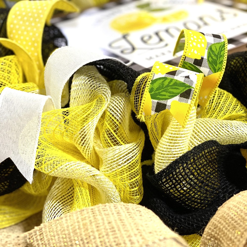 This lemon wreath will make a wonderful addition to your summer decor or a thoughtful gift for that special birthday. Use it for your own beach wreath, a summer wreath, a pool wreath or lake house decor! Thank you so much for visiting my shop and for considering pieces that allow my passion to make your home even more beautiful. Please message me with any questions before purchasing. This wreath measures approximately 24 inches round and approximately 5" deep. This ready to ship wreath is made with yellow and jute mesh and accented with several coordinating ribbons to showcase the wooden lemon sign in the center (that is removable). Want something more custom or have questions? Send me a message...the backbone of my business is custom creations! Purchase with confidence in a seller with excellent reviews and over 15,000 sales between all selling venues. Indoor and outdoor pieces but my wreaths do appreciate a little shelter from the elements to stay in pristine condition.