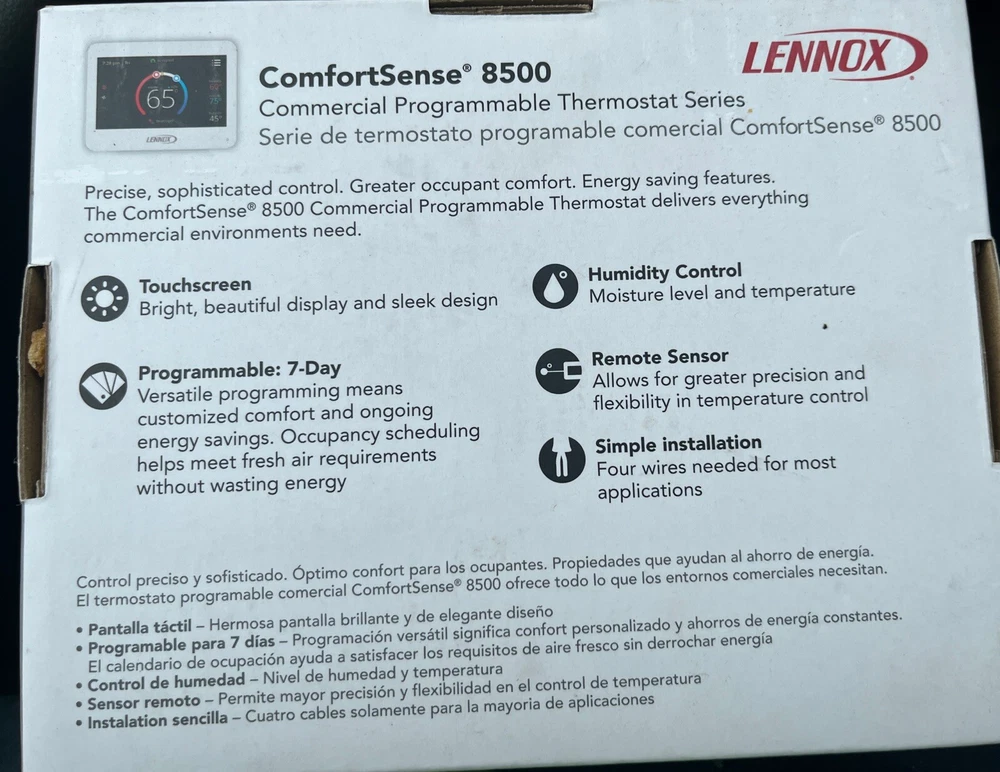 Lennox ComfortSense 8500 Commercial Programmable Thermostat - Non Zoning with CO2 sensor. 24K53