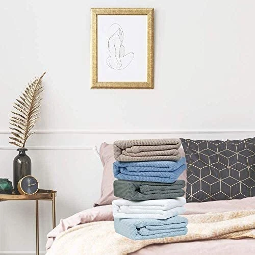 EXTRA-FLUFFY WEAVE BLANKETS: Our redesigned leno weave blankets are perfect for cold winters and pleasant summer nights. Made of 100% ring spun cotton, our blankets add an extra layer of warmth to keep you snuggly and cozy! MADE FROM QUALITY MATERIAL: Our twin and queen blankets are made from 100% ring spun cotton material that adds the perfect amount of softness no matter the place, day, or time! With a new leno weave design and a few alterations, our blankets are 10x more durable and snuggly. The new design adds the perfect wave of warmth for anyone and everyone. WARM THERMAL BLANKETS FOR HOME: Our blankets are perfect for home and hospital use! Having multiple uses as hospital blankets, bedspreads and throw blankets it will provide extra warmth and comfort for patients. Available in our new classic colors, the blamnkets are a perfect collection for giving your home the right makeover. MULTIPURPOSE COTTON BLANKET: The blankets come in a variety of colors and are a great addition to any bedroom, living room and even cars. You will get the perfect balance of warmth and comfort that you need. Our bed blankets are suitable for children’s rooms, hospital beds, dorm rooms, and snuggling on the couch. They are easy to carry around without any hassles. CARE FOR YOUR BLANKET: Our woven blankets are machine washable and dryer friendly! It is constructed to avoid shrinking after every wash and sustain its original structure despite basic wear and tear throughout the blanket’s . We recommend washing on cold to avoid shrinking and dry on low.