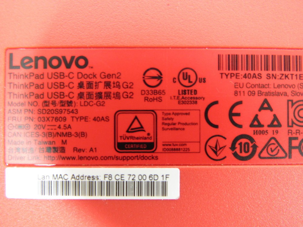Lenovo ThinkPad USB-C 3.0 Dock Generation 2 LDC-G2 Gen2 Docking Station HDMI DP . Why buy from OceanTech Our company has been serving customers since 2005, and we are proud to have built a reputation for providing top-notch products at unbeatable prices. Our refurbished computers and laptops go through a rigorous testing process to ensure they are in top working condition. We wipe all data to NIST and other industry standards, ensuring that our customers can trust the security of their devices. We hold multiple certifications, including R2v3, and we are committed to protecting the environment by properly disposing of scrap materials. Our inventory is always changing, so be sure to check back often to see what we have available. CUSTOMER SERVICE FREE RETURNS 30 or 90 DAYS WARRANTY (Please see listing for more details) ITEM CONDITION Cosmetic Condition Field (Assigned in Reuse) Functional Condition Field (Assigned in Reuse) C1 = Damaged (For materials recovery) F1 = Collectible or Specialty Equipment (Core Requirement 6.(e)(3)(A)). Collectibles are rare, vintage, and no longer manufactured or supported by the OEM. Specialty equipment are rare and specialized equipment not generally available in retail. May have broken or missing parts. C2 = Used Poor (Heavy use and age) Cosmetic blemishes are significant, such as multiple heavy dents, may require repair. Damages to latches, hinges, keyboards, etc. are prevalent. Critical parts are missing. F2 = Verified Specialty Electronics (Appendix D). Verified removed from operation with no known defects in functionality. No physical damage or defects. No corrosion. No missing parts. Part numbers and serial numbers verified accurate. C3 = Used Fair (Moderate use and age) Cosmetic blemishes are consistent with wear, including multiple dents, discoloration, and light to heavy scratches. Damage to latches, hinges, keyboards, etc. Some parts, panels, bezels, or covers may be missing. F3 = Key Functions Working (Appendix C – Test and Repair). A subset of the primary functions of the device that an ordinary user of the device expects to function are verified working through manual or software tests. Software may not be loaded or configured. Hardware required for key functions to be tested may have been removed after testing (e.g. Hard Drive). May be missing components or parts not essential to key functions. Secondary functions may not be tested or working. May not include Focus Materials (e.g. Battery) that are not working or not tested. All missing components or parts will be listed for each item. C4 = Used Good Cosmetic blemishes include scratches and/or other surface imperfections from consistent use, but equipment is in good condition overall. Minor wear of labeling may be visible. Small dents and small areas of discoloration may be present from the removal of tags No damage to latches or hinges, not any missing parts, panels, bezels or covers. F4 = Hardware Functional (Appendix C – Test and Repair). All hardware is tested and verified working through manual or software tests. No missing or damaged components or parts. Software not loaded or configured. No hardware defects. C5 = Used Very Good Cosmetic blemishes include minor scratches and/or other surface imperfections from consistent use, but equipment is in good condition.Minor wear of labeling may be visible. Minor dents and areas. F5 = Refurbished (Appendix C – Test and Repair).All functions tested and verified working through software tests. Loaded and configured with legally licensed software for full operations. Software test results are available. No hardware or software defects. C6 = Used Excellent. Overall excellent cosmetic condition. May have light scratches or other minor blemishes from normal wear. Minor cosmetic blemishes have no impact on the system’s overall functionality or performance.Fully cleaned with all non-original labels removed. No missing parts. F6 = Like New (Appendix C – Test and Repair). All functions tested and verified working through software tests. Repaired with OEM original parts. Loaded and configured with original manufacturer’s legally licensed software for full operation. Meets OEM specifications for full original functionality. Software test results are available. Zero defects. C7 = Certified Pre-Owned (Seller or Manufacturer Refurbished). Used equipment that has been fully restored to like-new condition with warranty.Fully cleaned and cosmetically repaired with no blemishes, no missing parts. C8 = Unused. New, out of box, unused equipment removed from original packaging with no signs of wear or alteration. C9 = New Open Box. New, unused equipment in original packaging where factory seals have been broken. No signs of wear or alteration. SHIPPING Enjoy free shipping on select orders within the contiguous 48 states, with the exception of Alaska, Hawaii and US territories. For these areas, please contact us for a shipping quote or choose USPS Priority Mail as an alternative. We use a variety of shipping methods such as Fedex, UPS or USPS and reserve the right to choose the most cost-effective option for you. Please note that for orders over $750, a signature is required upon delivery. We are required to ship to the address provided on your paid order. For those needing expedited shipping, send us a message with your request and we will do our best to accommodate your needs. Please note that same-day shipping is not guaranteed if the order is placed after 12pm CST. All orders will ship the following business day after payment is received. Please note that we are closed on weekends and observe Federal Holidays, following the USPS annual shipping calendar. Unfortunately, at this time, we are unable to ship outside of the USA but we hope to offer this service in the future. We apologize for any inconvenience. RETURNS We want our customers to have security and peace of mind when making a purchase. We participate in eBay’s 30 Day Money Back Guarantee progra