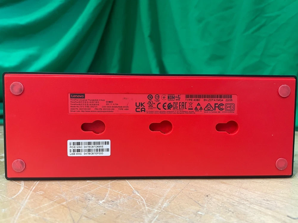 ---------------------------------------------------------------------------------------------------------------------------- Lenovo ThinkPad Universal Thunderbolt 4 Dock Station Type 40B0 DK2131 Manufacturer Lenovo Type Docking Station Part Number DK2131 Inventory W3 MOST OF OUR SHIPMENTS ARRIVE IN 2-DAYS OR LESS! ----------------------------------------------------------------------------------------------------------------------------------------------------------------------- PAYMENT & SHIPPING: PayPal is the only acceptable payment method and we only ship to a confirmed buyers address that is verified by PayPal. No exceptions! Payments must be made within 3-days of auction closing. All non-payment members will be added to our blocked list and banned from future eBay purchases. Tracking information will be posted on eBay. FEEDBACK: Feedback is left for buyers that leave Resale Technologies feedback. If for some reason there is an issue with your order please do not hesitate to contact our support team and we will be happy to resolve your issue swift and efficiently. RETURN POLICY We accept returns on all items that qualify for our 30 Day Warranty. We will pay return shipping to our facility for any item that is defective, damaged, or misrepresented in our eBay listing. Items will be repaired, replaced, or refunded. This warranty does not apply if shipped outside the United States. For all other returns, shipping will be paid by the customer and may be subject to a 20% restocking fee. CONTACT US If you have any product questions, please reach out through eBay and we will assist however possible. NOTE: ALL ITEMS THAT WE SELL ARE ASSIGNED AN UNIQUE IAT (INTERNAL ASSET TAG) THAT MUST MATCH WITH OUR INVENTORY SYSTEM IN ORDER TO RECEIVE FULL CREDIT OR EXCHANGE. OUR IAT'S TRACK SERIAL NUMBERS, PARTS/PERIPHERALS, AND CONDITIONS OF EACH ITEM SOLD.