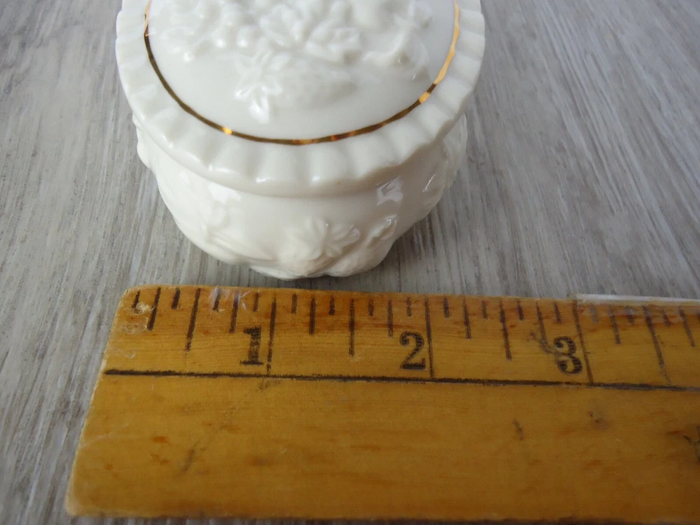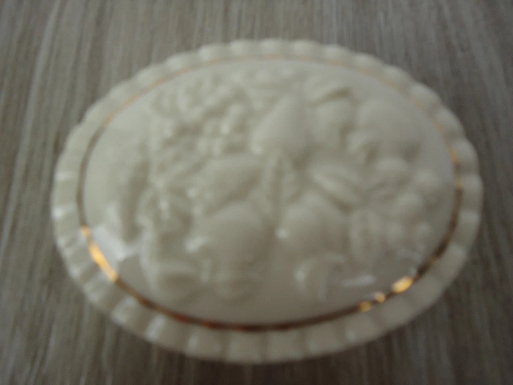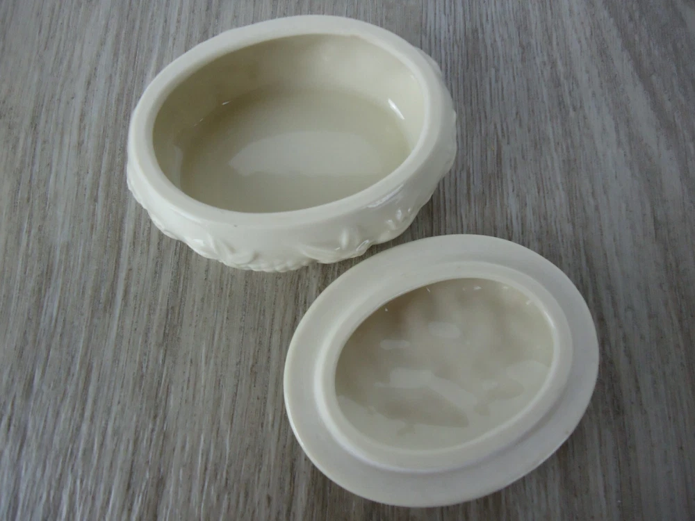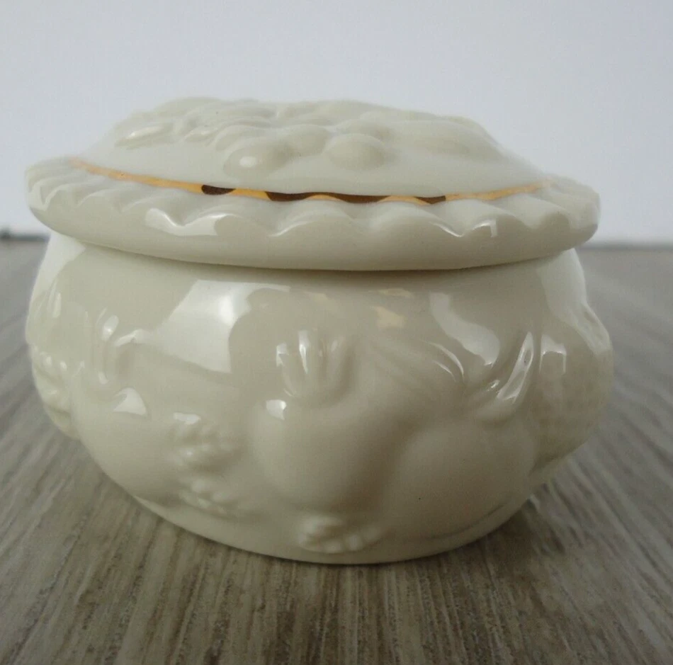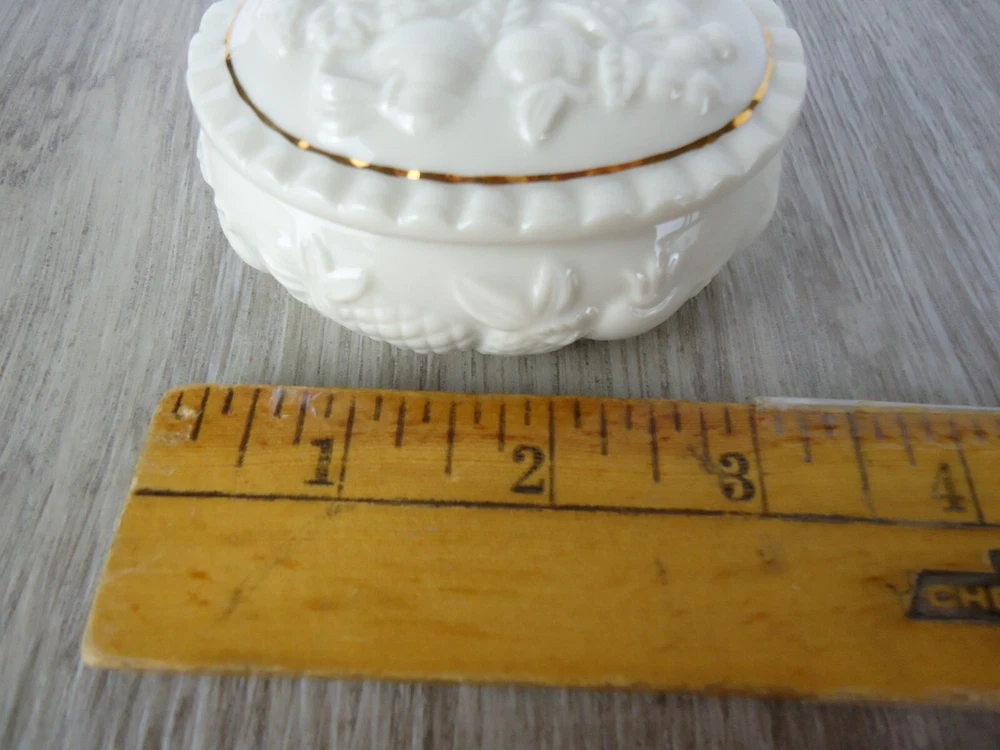 Shape:OvalSubject:Fruit Pineapple Strawberry Cherries GrapesPackaging:BoxFeatures:With Lid, Gold Detail, HandcraftedSeller Notes:“Preowned used condition.”Style:Maximalist Spring garden French CountryCountry/Region of Manufacture:ChinaYear Manufactured:1989Occasion:All OccasionsPattern:All-OverColor:WhiteBrand:LenoxTheme:Fairy Tales, Food & Drink, NoveltyMaterial:PorcelainType:Trinket BoxCollection:Fruit of Life
