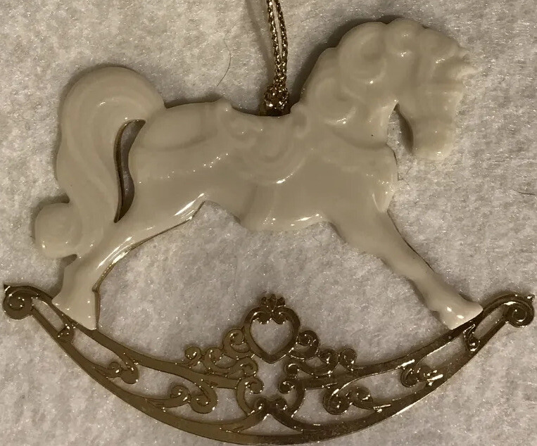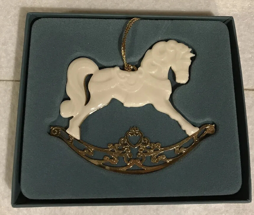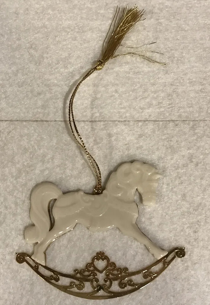 Offered in this listing is a Lenox 1994 Ornament Rocking Horse Gold Accents Christmas Holiday Vintage With Box. This ornament measures 3 1/2” wide x 2 1/12” tall. In excellent, previously owned condition. The box shows wear. See my listings for other ornaments. I love finding items that appeal to me on a personal level. Especially old china and glassware. That said, I often sell a variety of items outside of this category. Whether a plate, vase, tea cup and saucer or toy, while the item appeals to me, it doesn't necessarily make me knowledgable about the item. If an item includes the box, I will state so in the description and/or pictures. Please email me prior to bidding with any questions. I will answer all questions to the best of my ability. I try to provide as many pictures as possible to show an accurate representation of the item so please view the photos carefully. as they are part of the description. *** Check back for my upcoming listings *** Note: This item may be available for purchase in venues outside of eBay. I reserve the right to end this auction at any time. Also visit my partner store - Cranky Art's Vintage and Unusual.