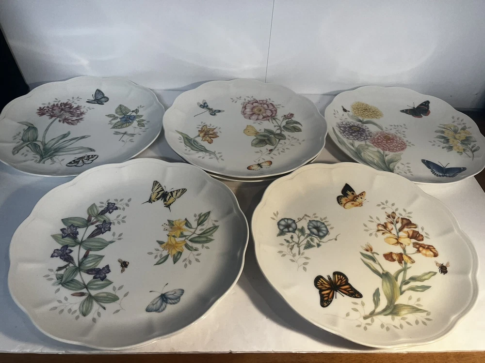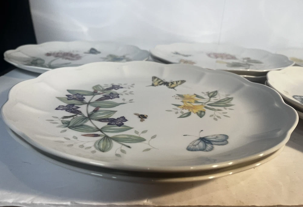 Lenox Butterfly Meadow 11" Dinner Plates Set Of 8 Floral Nature Theme Good condition, no scratches or chips. Photo 2: two of the same plate Photo 3: one of the plates is faded Photo 4: two of the same plate Photo 5: two of the same plate $25.99 or best offer $29.99 shipping