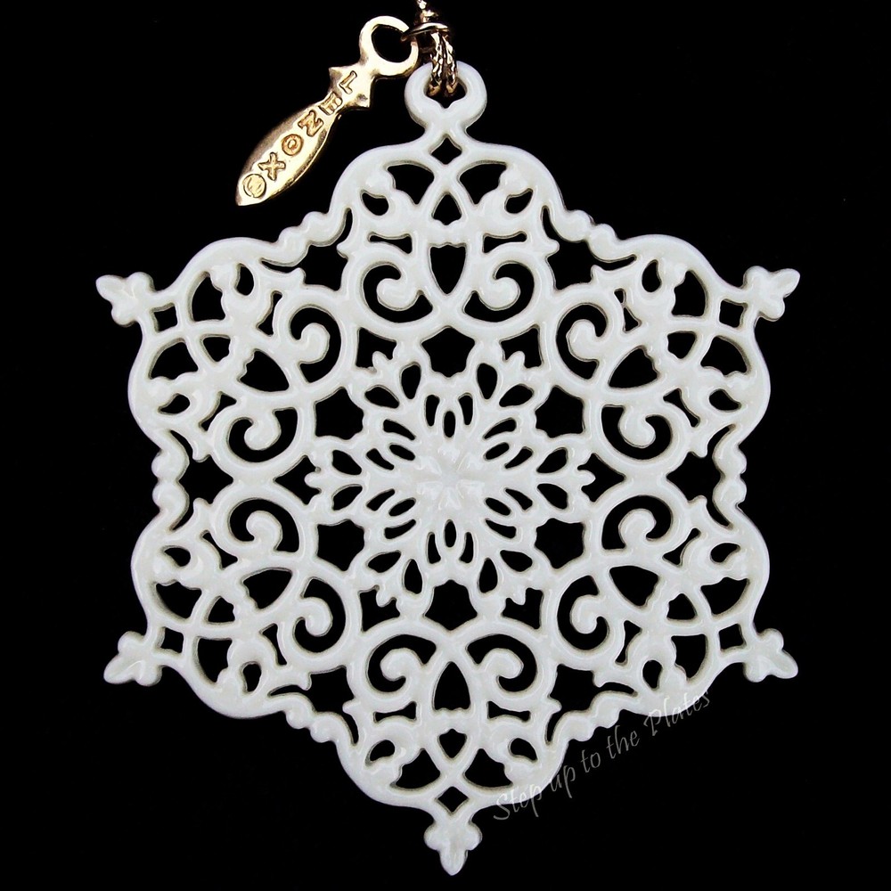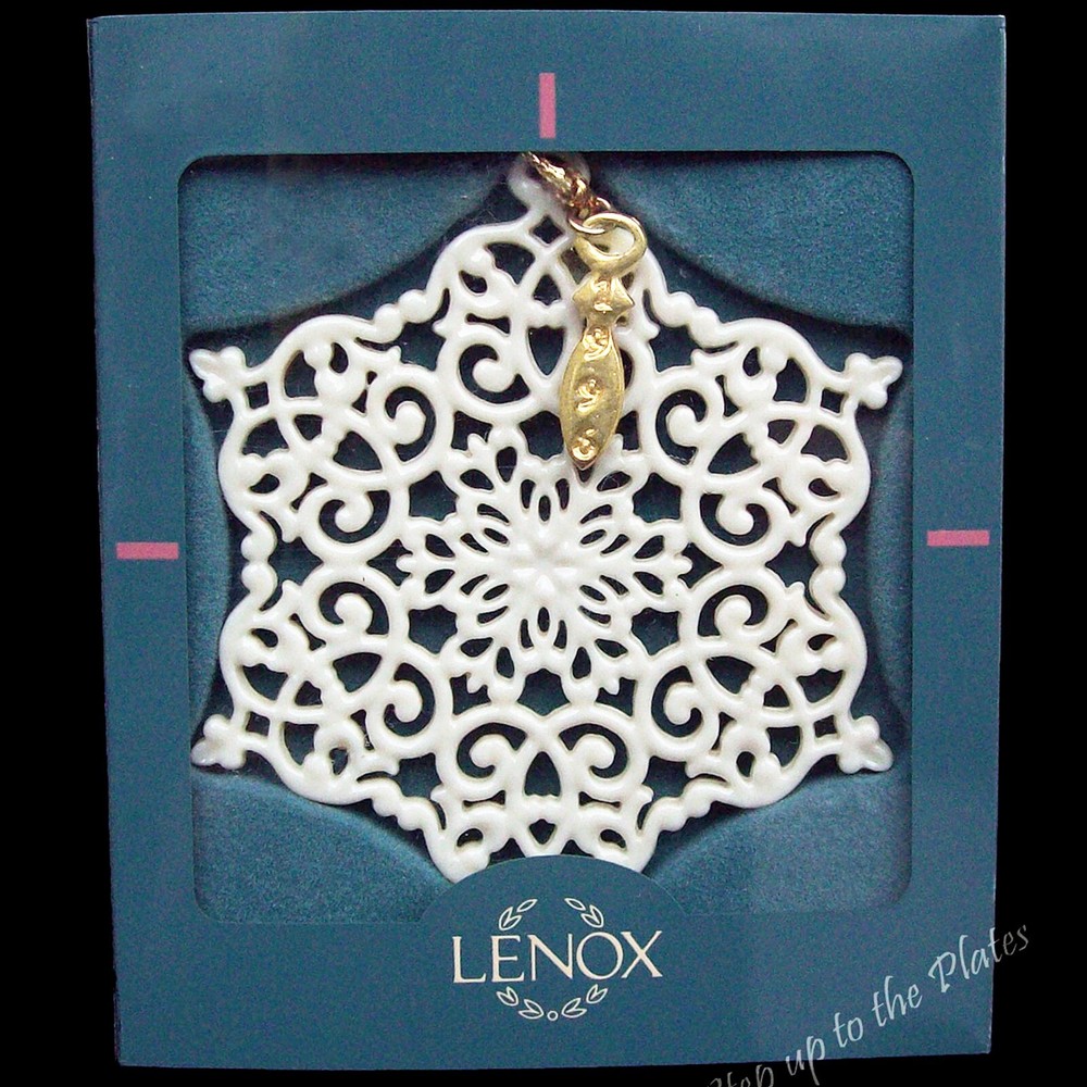 Lenox China ~ 1996 Snowflake Ornament For your consideration, the one that started the collecting craze, the first Annual Snow Fantasies Snowflake Ornament from 1996. Crafted from fine ivory Lenox china with delicate piercings. The Ornament is 3-3/4" High. Absolutely Mint condition, no damage whatsoever. Hangtag has 1996 on one side, Lenox on the other. There were two style hangtags for this ornament, this is the first generation, it is very heavy and was replaced with the more familiar, and much lighter tag. Will arrive in the original box that has sticky residue on the back. Please see our other ornaments listed. Ships insured Have more Lenox listed Value Added Service We answer emails personally and understand you have concerns and questions that may be outside of the scope of the auction copy Feedback is left by us when we receive your payment. It's the very least we can do to thank you for putting your trust in us We know how to pack, using the proper materials to best protect your purchase Shipping Buyer is responsible for shipping costs, unless the listing is advertised as "Free Shipping". The shipping fee is either clearly stated or the eBay calculator determines shipping based on your zip code and the box particulars. Multiple purchases may have an unknown shipping rate due to fluctuations in weight but items will be combined to save money whenever possible. Insurance is always provided by us to cover loss or in the rare instance, damage If you intend on bidding on multiple items, please let us know so we don't start packing in advance In the case of damage in an insured shipment: Retain all packing materials and the box that was received. Please submit digital images of the damage as well as the shipping box and packing materials via Contact Seller in eBay. Returns If you receive something not as described due to a blatant mistake on our part, we'll pay everything; return shipping as well as a full refund of the purchase price and the original shipping Buyer's Remorse: We are flexible if a purchased item arrives and you simply change your mind. A 15% restocking fee will be charged and return shipping is at buyer's expense Please notify us within three days of item(s) receipt and for pre-authorization (use the contact button). The item(s) must be returned and received in the same condition as when originally shipped. Item(s) must be returned shipping prepaid, insured for the full value and safely wrapped and packaged to prevent shipping damage. Unless stated as new, these pieces have been around for many years, some as many as 100 years and are sold as described. They may have been displayed, used, washed, packed, etc The pictures and descriptions are as detailed as possible, and all reasonable care has been taken to describe as accurately as possible along with any damage or issues noted. However, vintage and antiques are previously owned If anything less than perfect, out of the box, isn't acceptable, these style pieces may not meet your standards.