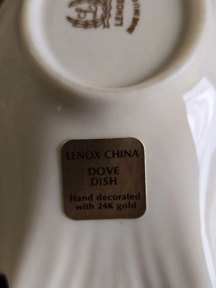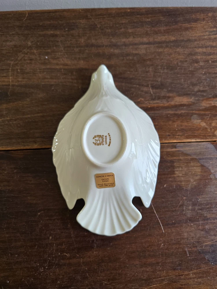 Lenox China Dove Candy, Soap Dish, & Jewelery Holder Hand Decorated W/24K Gold