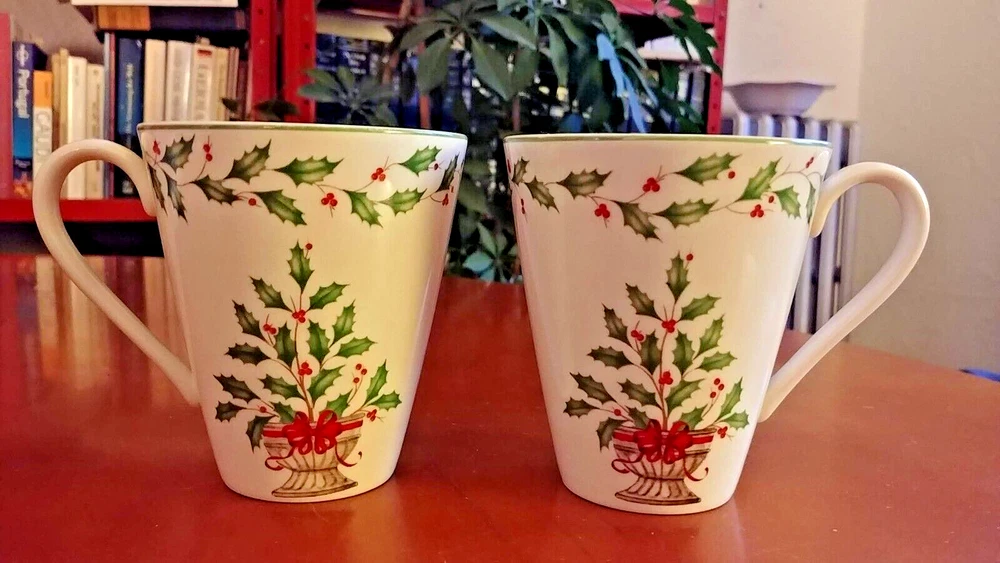 Lenox Christmas HOLIDAY (Dimension) Accent Mug Holly Tree Set of Two