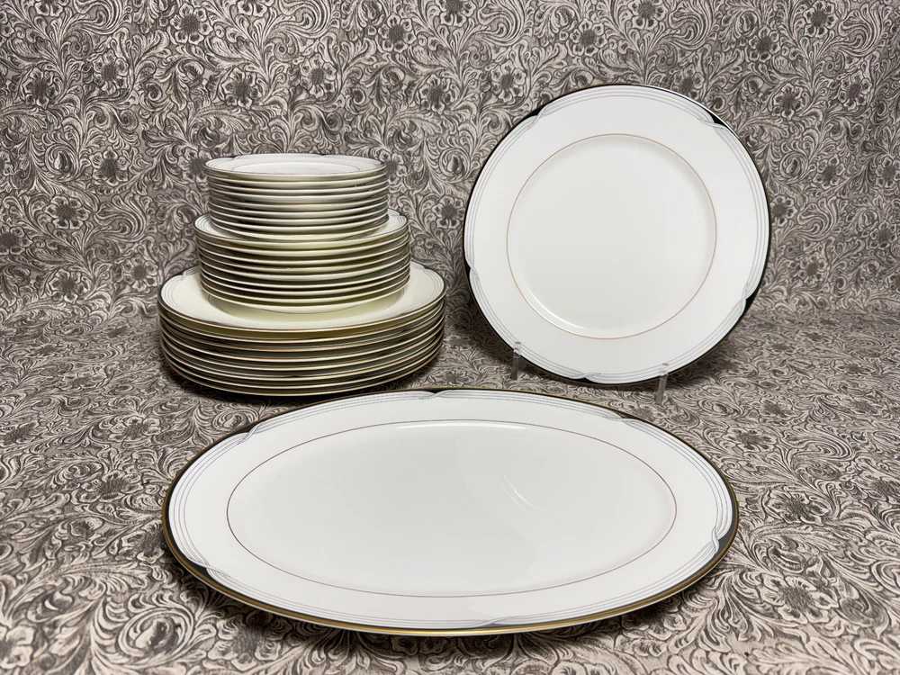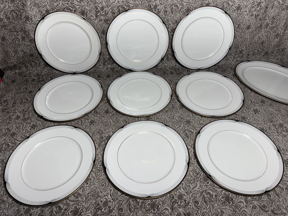 Trinity Antiques ~~~ Description: Lenox Erica China Debut Collection 28 Piece ... 9 Dinner Plates ... 9 Salad Plates ...9 Dessert Pleates and 1 oval Serving Platter Measures about .. . Weighs about ... 23 lbs Condition: Please LOOK at the photos ... Overall Condition AS SHOWN ... minimal surface wear as shown ... Shipping: USPS MAIL / FEDEX ... 23 lbs ... plus packaging & Insured / Signature Confirmation ... PLEASE Check shipping COST before bidding There is a GOOD start price SO a $3 Fee has been ADDED to the cost of SHIPPING to cover expenses :) Love Antiques & Treasures I am not an expert Antique Dealer I just go to local sales & thrift stores & hope to resell :) PLEASE * NO RETURNS * Take time TO READ the Description LOOK OVER PHOTOS ASK QUESTIONS before bidding REVIEW my Feedback score & comments * PLEASE DO NOT BE OFFENDED * BUYERS PLEASE ... try not complaining when you really just want some money back, but still want to keep the treasure :( PLEASE ... try not stealing some items in a lot & just returning what you did not want :( PLEASE ... try not returning your own damaged goods :( PLEASE ... try really hard not to hurt my family with false claims :( ~~~ I have a wonderful & loving 14 year old autistic son :) I truly appreciate YOUR support as every penny of my ebay sales gives us the joyful opportunity to homeschool & work from home Thank You ~~~ May the peace of G*D be with us all ~~~